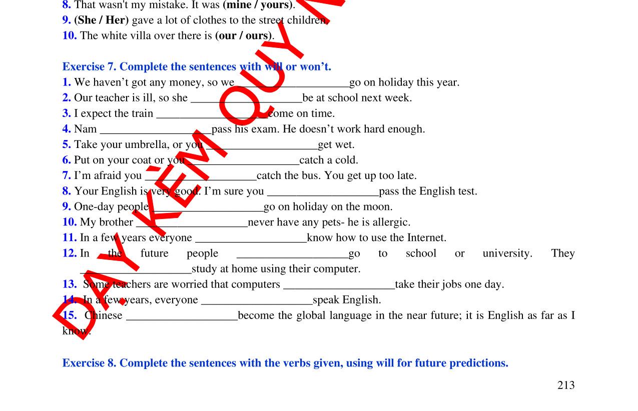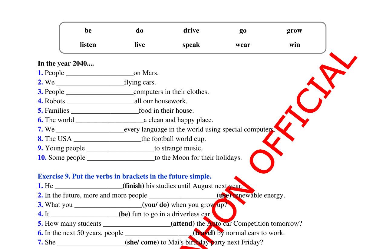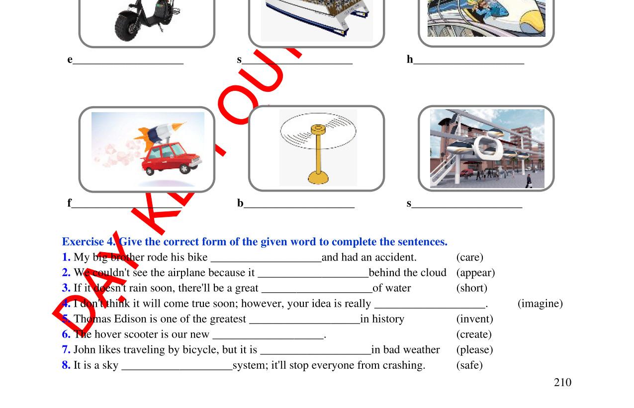 Exercise 10. Give the correct form of the given word to complete the sentences.