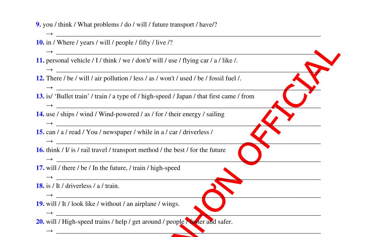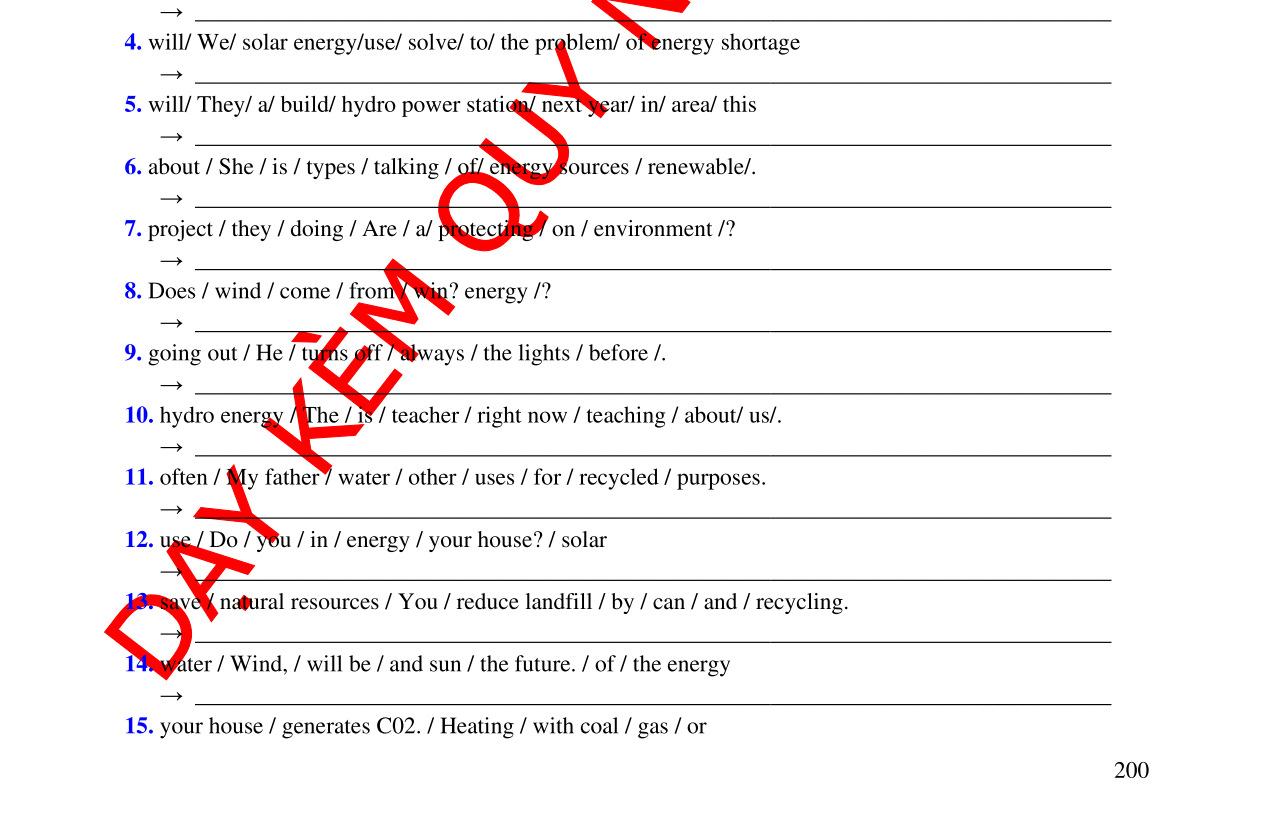 12. Limitcartripsbyrelyingonbiking,walking,public_________________. (transport) 13. Solarpowercanbeusedto_________________orcoolourhouses. (hot) 14. Energyisusedto_________________alotofelectricalthings. (product) 15. Therewillbea_________________ofenergyinthenearfuture. (short)