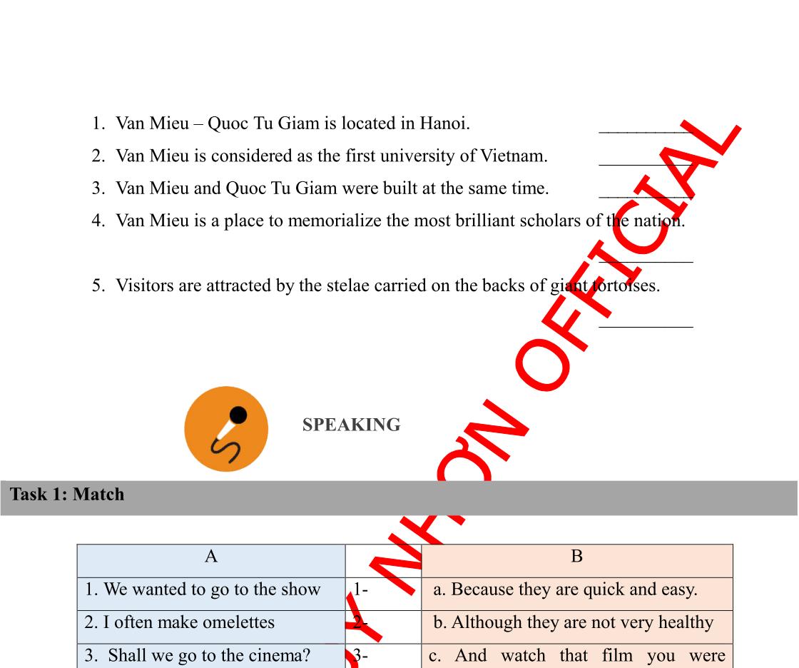 1. Read the following passage and decide whether each of the statements 1 -5 is TRUE or FALSE. (5 points)