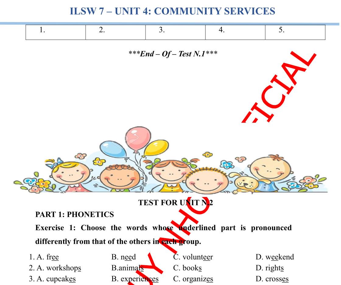 TEST FOR UNIT N.1
