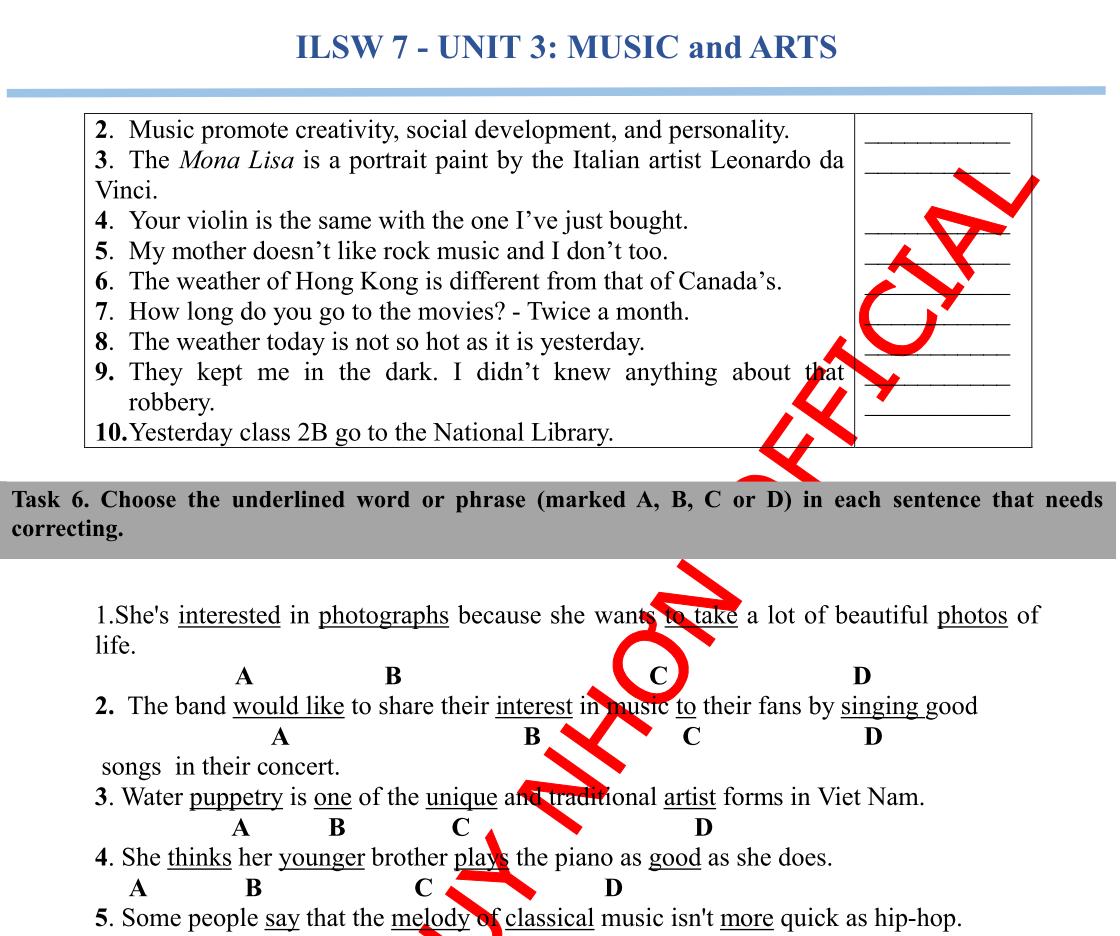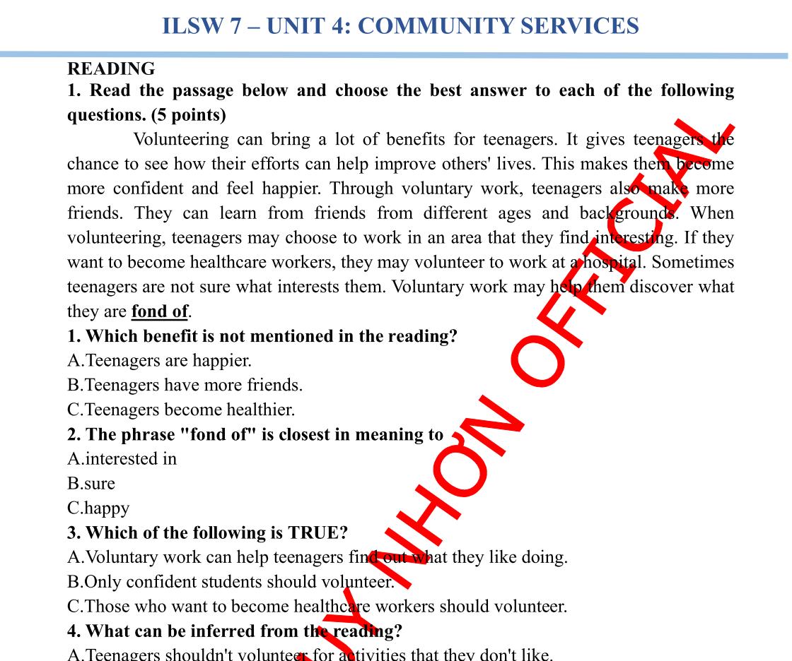 ILSW 7 - UNIT 1: FREE TIME