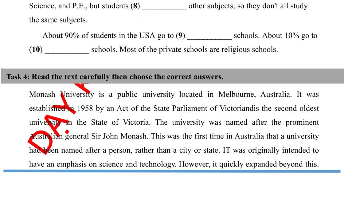 3. Fill in each blank with ONE suitable word. (10 points)