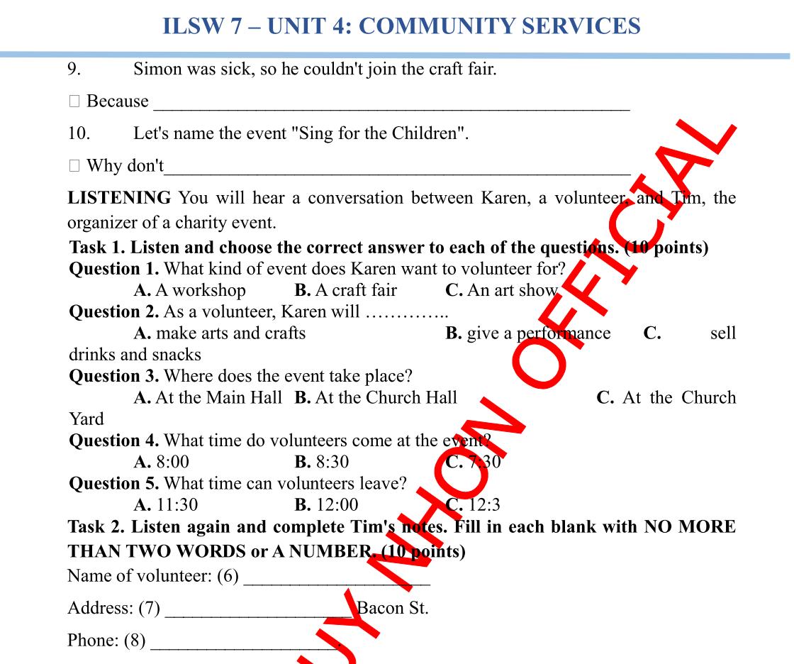 2. Rewrite the following sentences with the given words and/or beginnings in such a way that the meanings stay unchanged. (10 points)