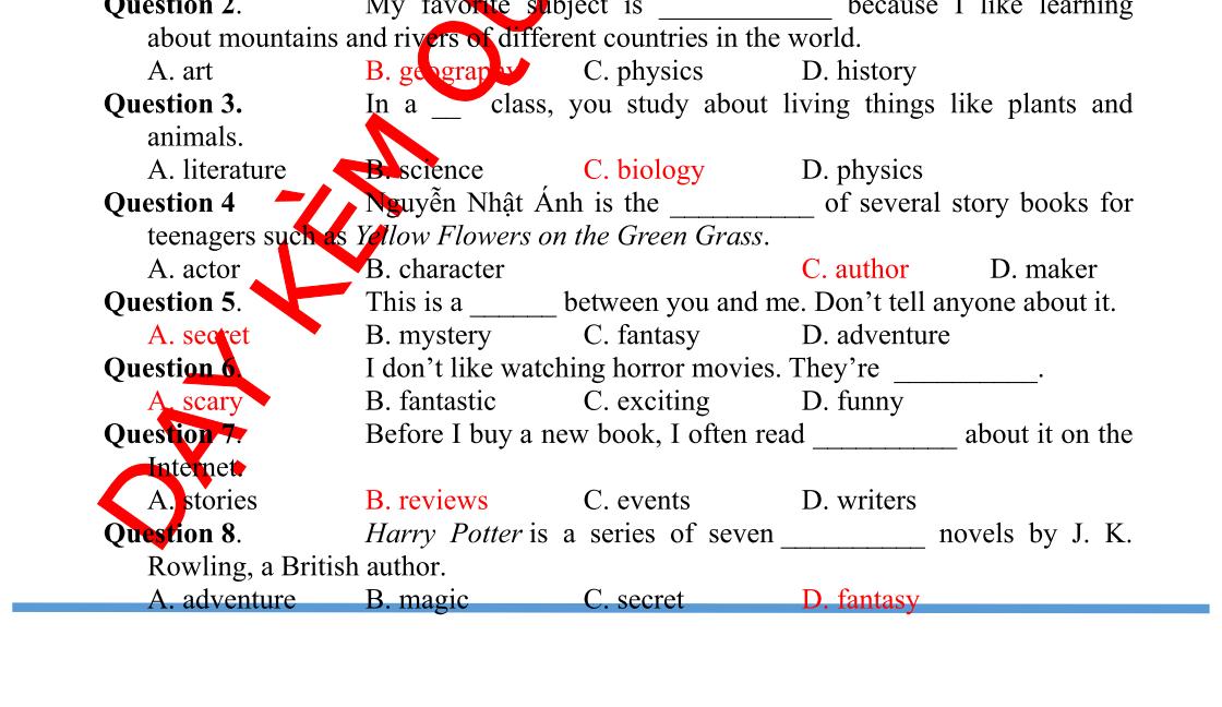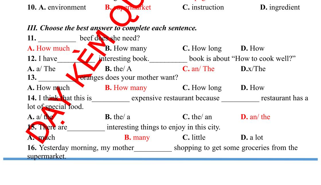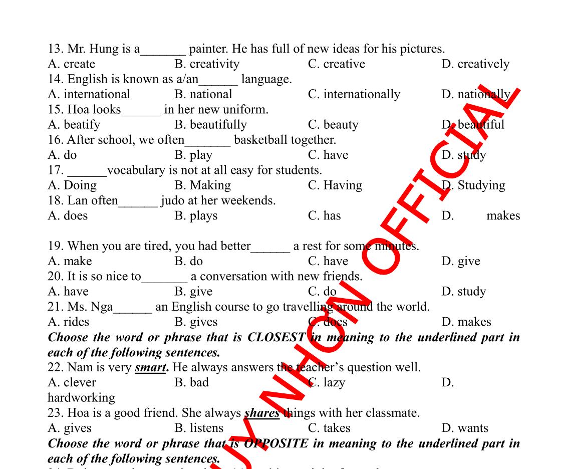 Hỗ trợ trực tuyến Fb www.facebook.com/DayKemQuyNhon Mobi/Zalo 0905779594 Tài liệu chuẩn tham khảo Phát triển kênh bởi Ths Nguyễn Thanh Tú Đơn vị tài trợ / phát hành / chia sẻ học thuật : Nguyen Thanh Tu Group BÀI TẬP BỔ TRỢ TIẾNG ANH LỚP