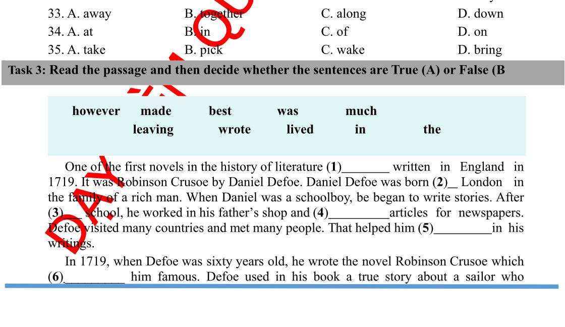 2. Choose the option (A, B, or C) that best completes each numbered blank in the passage. (10 points)