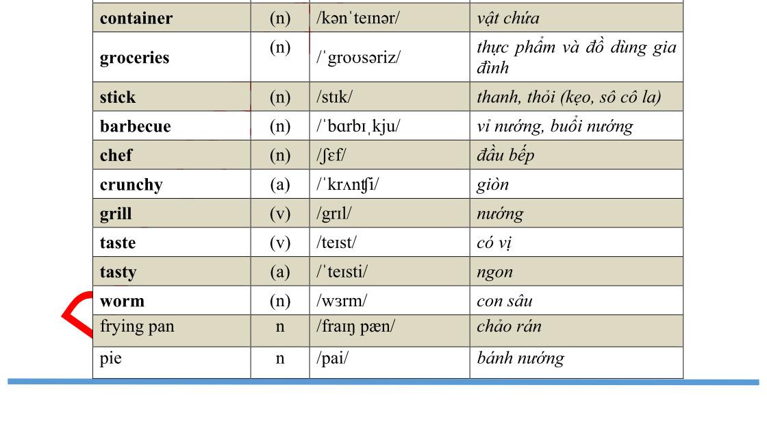 unusual adj /ʌnˈjuːʒʊəl/ bất thường bake v /beɪk/ nướng, nung collect v /kəˈlɛkt/ sưu tập, thu thập comic n /ˈkɑmɪk/ truyện tranh game n