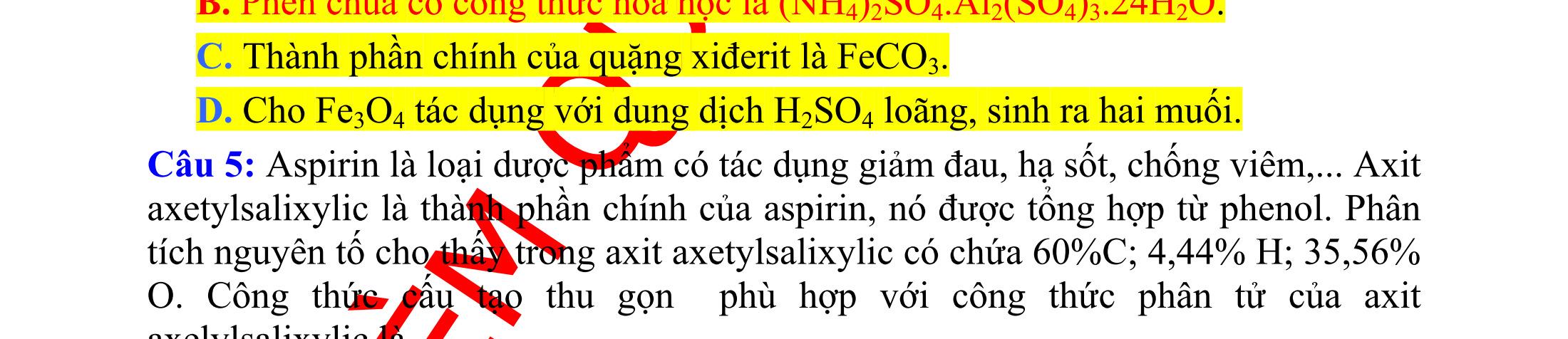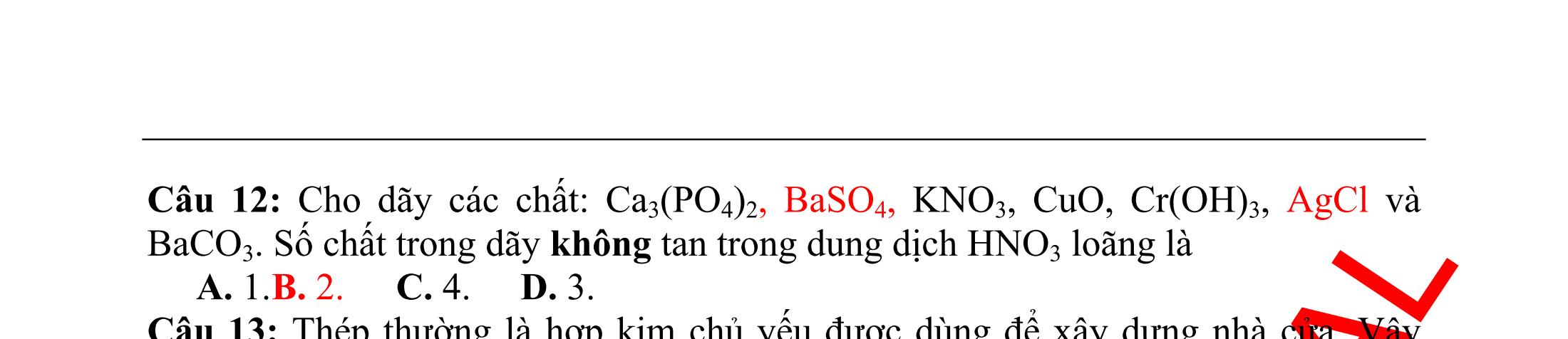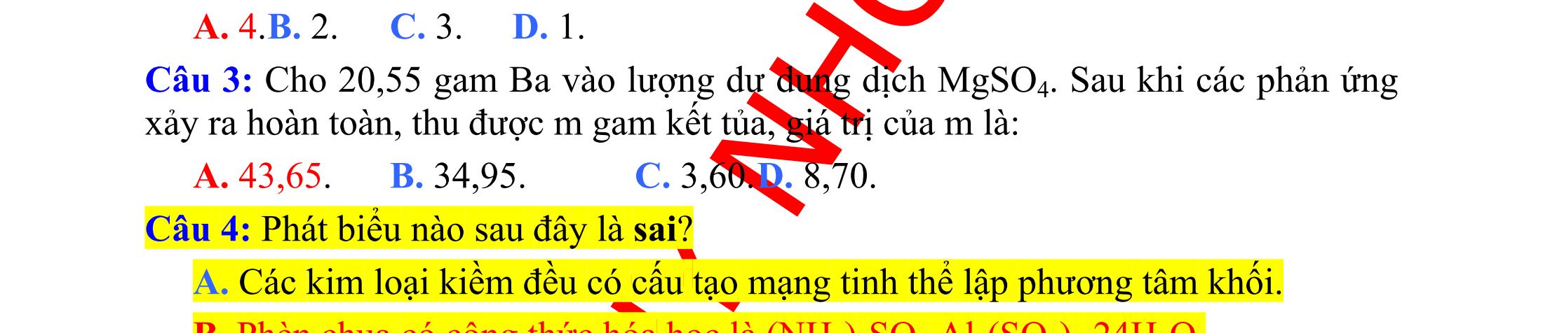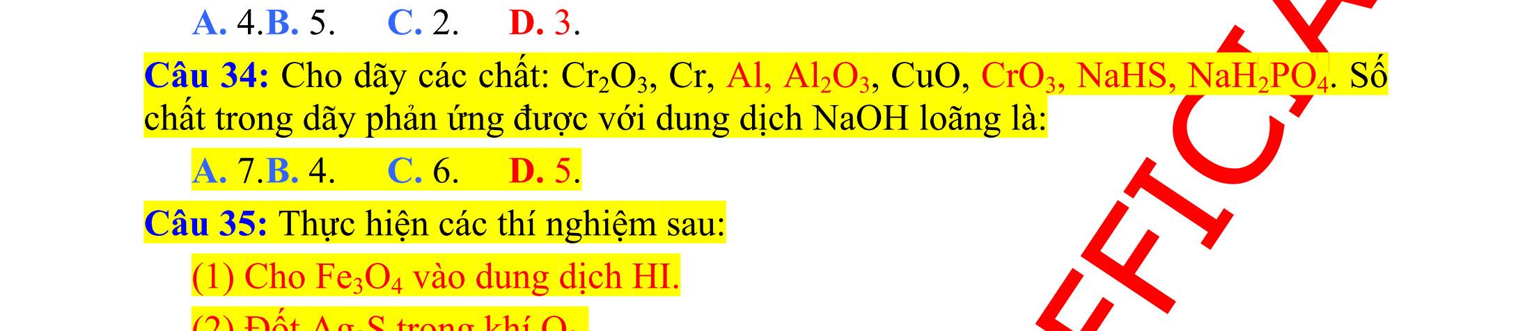 H = 1; C = 12; N = 14; O = 16; Na = 23; Mg = 24; Al = 27; S = 32; Cl = 35,5; Ca = 40; Cr = 52; Fe = 56; Cu = 64; Zn = 65; Sr = 88; Ag=108; Ba = 137. Câu 1: Phản ứng nào sau đây không phải là phản ứng oxi hóa – khử?