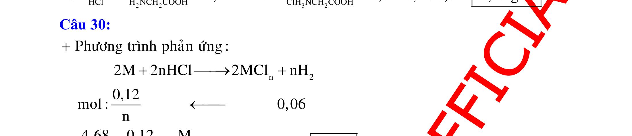 Câu 21: Amino axit X trong phân tử có một nhóm –NH2 và một nhóm –COOH. Cho 26,7 gam X phản ứng với lượng dư dung dịch HCl, thu được dung dịch chứa 37,65 gam muối. Công thức của X là