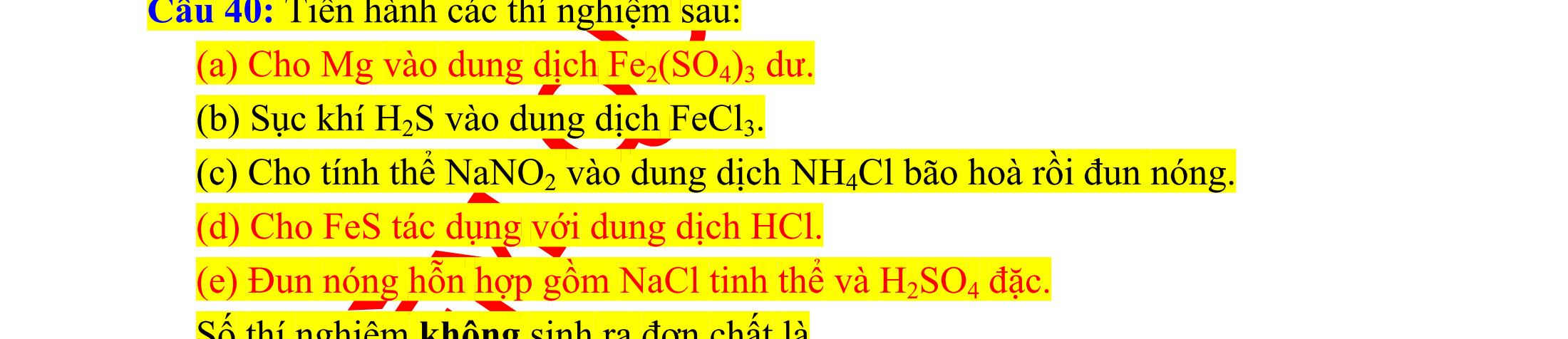 Câu 10: Thực hiện các thí nghiệm sau ở điều kiện thường: