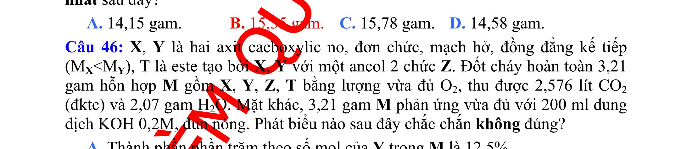 Câu 29: Chất nào sau đây không thủy phân trong môi trường axit?