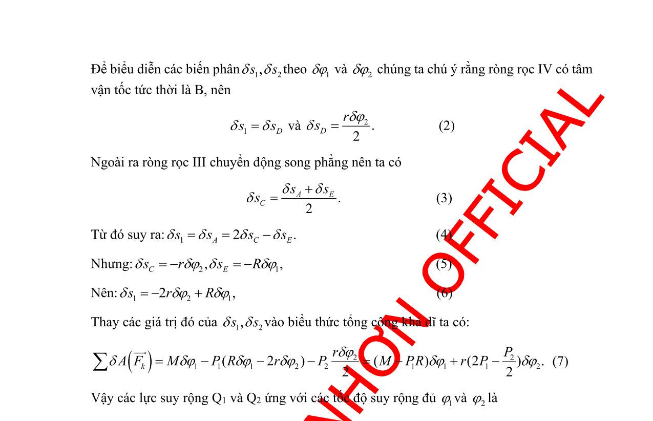 + Biểu thành phần phản lực liên kết (chưa biết) theo các lực đã biết và vi phân của toạ độ suy rộng.
