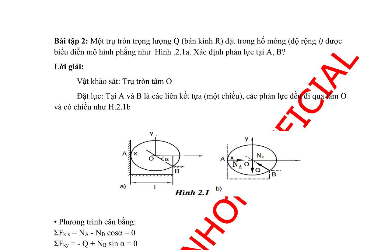 Thay (6) và (7) vào (8) và (8) ta được: ms0ms 1 FFcosNsinm(acosgsin)cosm(gcosasin)sin 2 =+=−++ 2 2 ms0 sincoscos Fmgasin 22 =++ (10) 0 1 NNcosTsinm(gcosasin)cosm(acosgsin)sin 2 =−=+−− 2 2 0 sinsincos Nmgcosa22 =++ (11) Cái nêm vẫn đứng yên nếu ms00 FkN , tức là khi: 2 2 sincoscos gasink 22 ++ 2 2 sinsincos gcosa22 ++