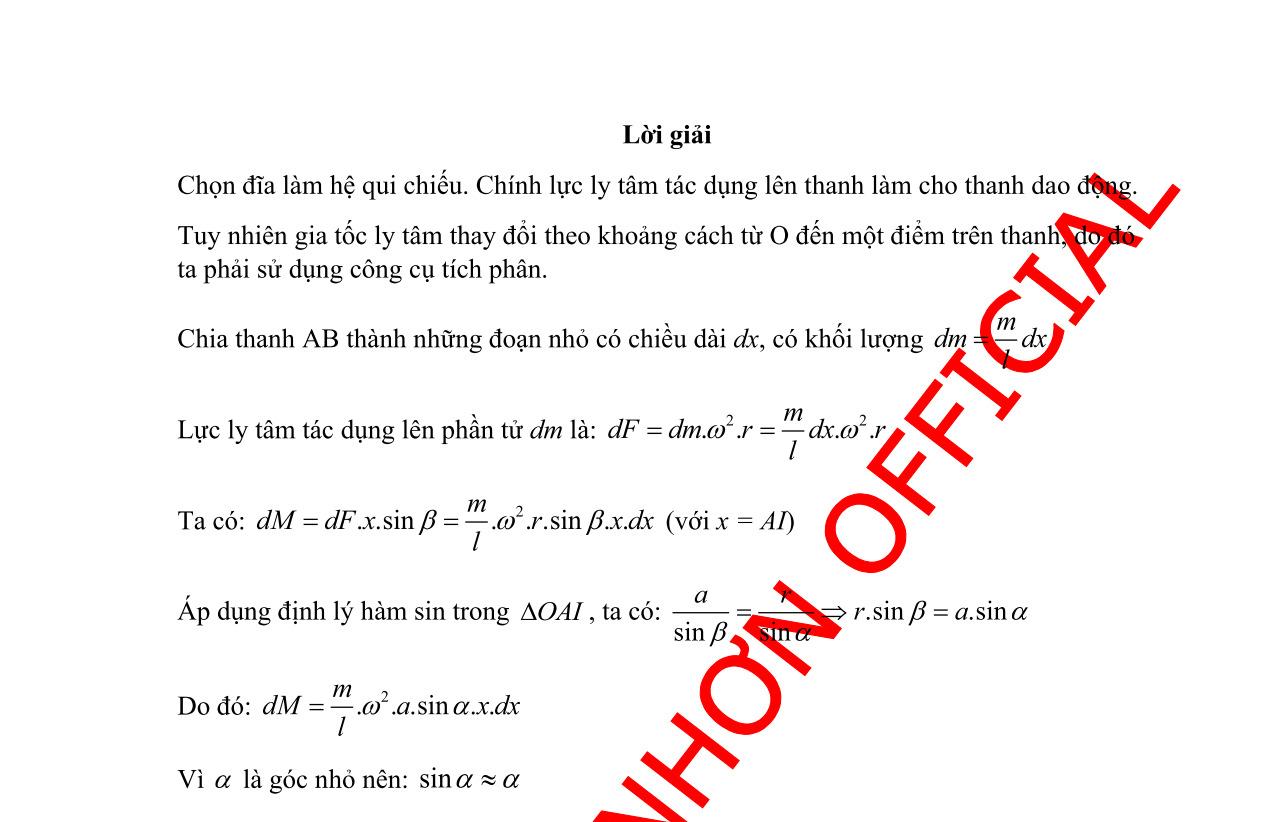 Giải Ba: Chuyên đề Xây dựng hệ thống bài toán liên kết trong cơ học vật rắn, Tác giả Phạm Thành Công, Đỗ Thị Hồng Liên, Trường THPT Chuyên Biên Hòa, Hà Nam (trang 285 hết)