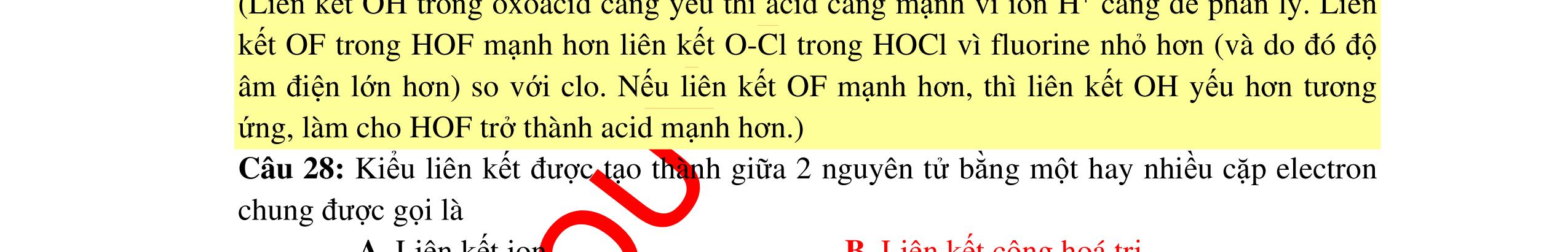 ● Các nguyên tử có độ âm điện lớn thường gặp trong liên kết hydrogen là N, O, F.