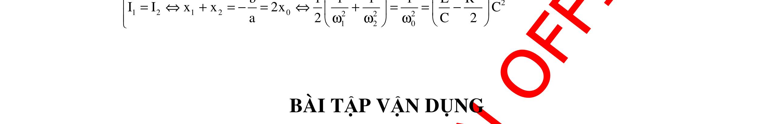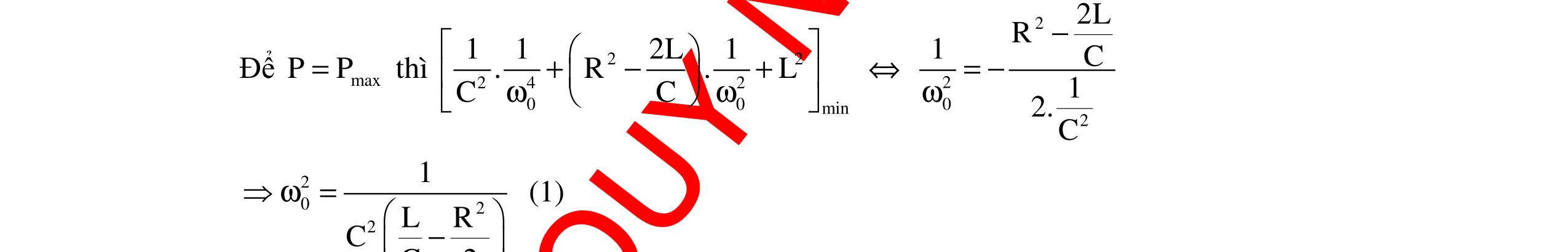 DẠYKÈMQUYNHƠNOFFICIAL 365 Ta có: () () ++ = == ++ 2 22 322 2 2222 22 2 2222 222 2L12L1 00 x2x CCCC 2L2LR y'LRL0R0xxCCC 0 LxRxLxRx Với ∆=+> ∆=+ 432 2 2 43 2 L2LLL2L 'R0'R CCCCC ++ =ω=> −+ =ω=< 22 2 22 2 1 3 22 2 22 2 2 3 LLL2L R CCCC x0 2L C LLL2L R CCCC x0 2L C Ta có bảng biến thiên x -∞ x1 < 0 0 x2 > 0 +∞ y’ - 0 + y +∞ 0 0 ymin RLU () + = +− 22 L RLmax 22 LC RZ UU RZZ 0 U Biến đổi nghiệm ++++ =ω= ω= 22 2 2 2 22 2 2 2 1 3 2 LLL2LLL2L RR CCCCCCC x 2L 2L C (1) Nhân cả hai vế (1) cho 2L , ta được ++ =ω= 2 2 2 222 L LL2L R ZLCCC 2 hay =++ 2 2 L LLL ZR 2C2C2C Nhân cả hai vế (1) cho 2C rồi nghịch đảo, ta được == ω ++ 2 2 2 C 22 2 2 2 L 12 ZC C LL2L R CCC hay = ++ C 2 2 L ZC LLL R 2C2C2C