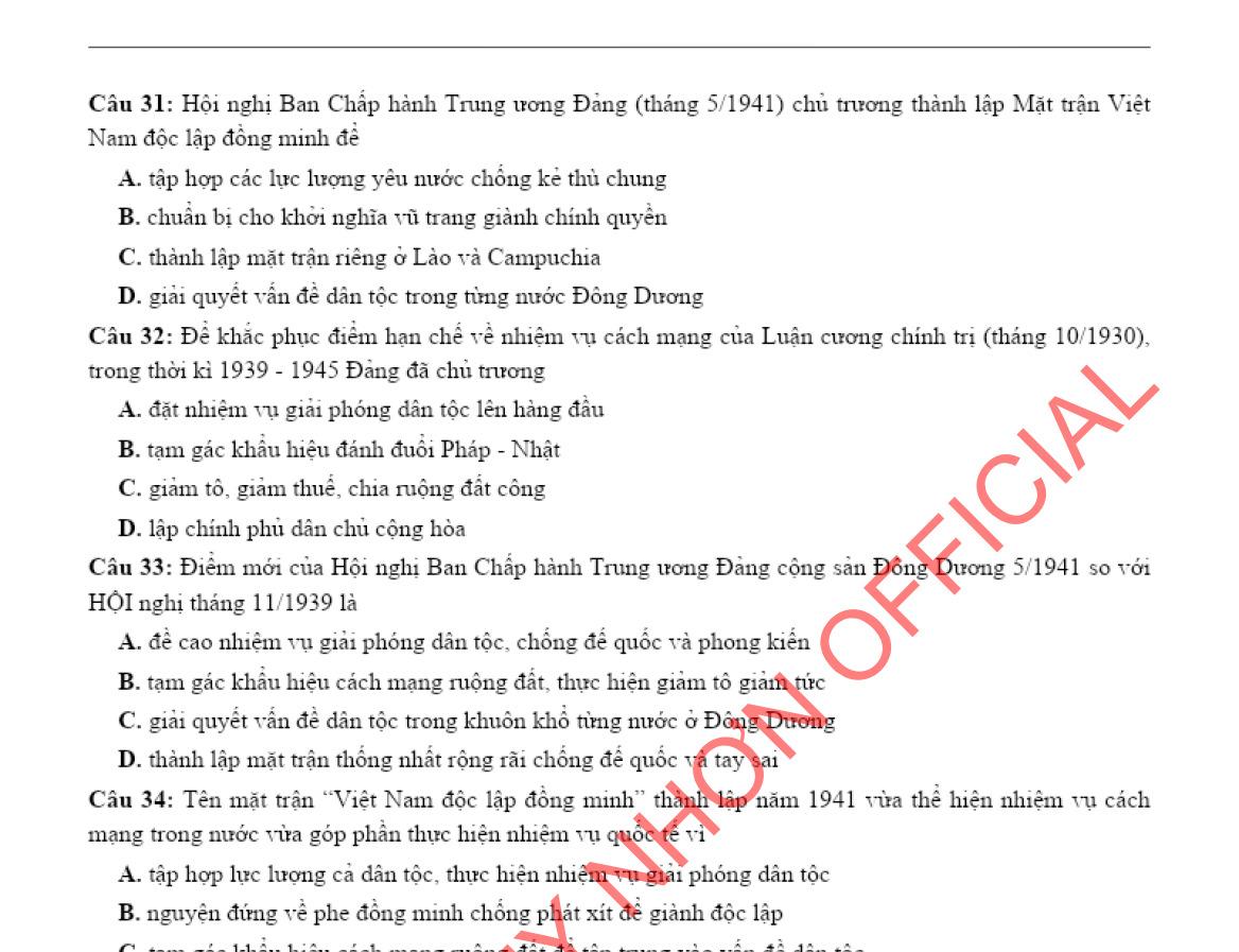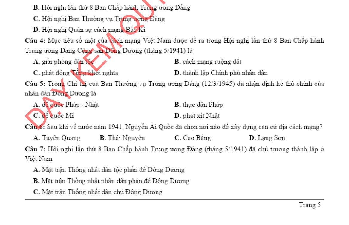 - Lịch sử Việt Nam - Bài tập bổ trợ theo 4