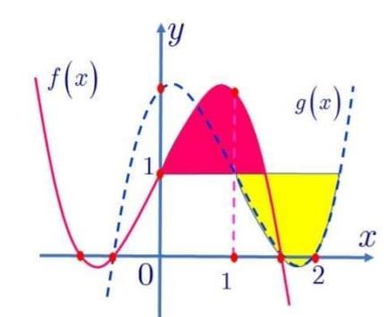 −=+−+−−+ 32 2 7 axbxxdn =+++− Mà ( ) ( )fxgx ( )( )( ) 32 11333. axxxaxaxaxa =+−−=−−+ Đồng nhất hệ số ta được 2 7 a =− Vậy diện tích hình phẳng giới hạn bởi hai đồ thị là ( )( )( ) 3 1 216 113. 77 Sxxxdx =−+−−= Câu 192: Cho hàm số bậc ba ( )yfx = có đồ thị là đường cong ở hình vẽ bên dưới. Gọi 1x , 2x lần lượt là hai điểm cực trị thoả mãn 21 2 xx=+ và đồ thị luôn đi qua ( ) ( ) 00 ; Mxfx trong đó 01 1 xx=− ; ( )gx là hàm số bậc hai có đồ thị đi qua hai điểm cực tr