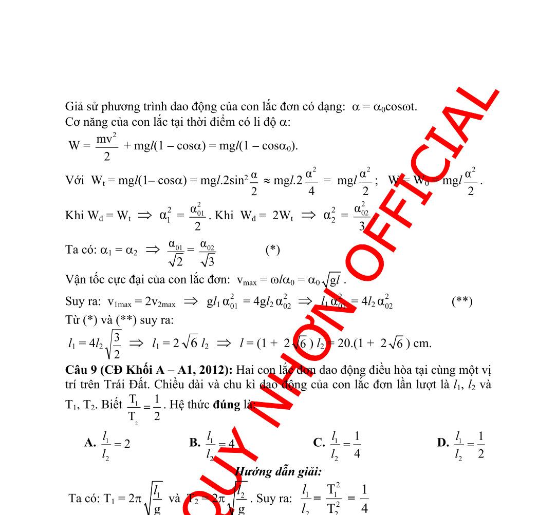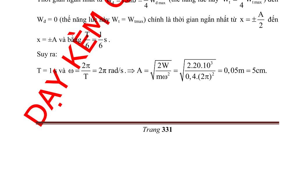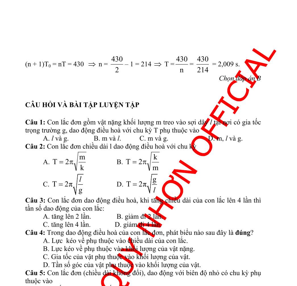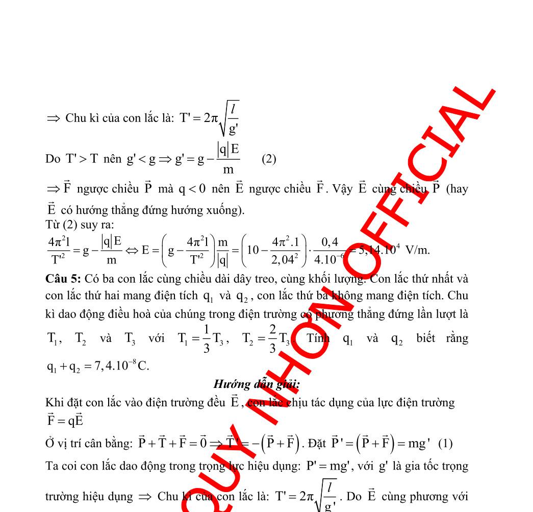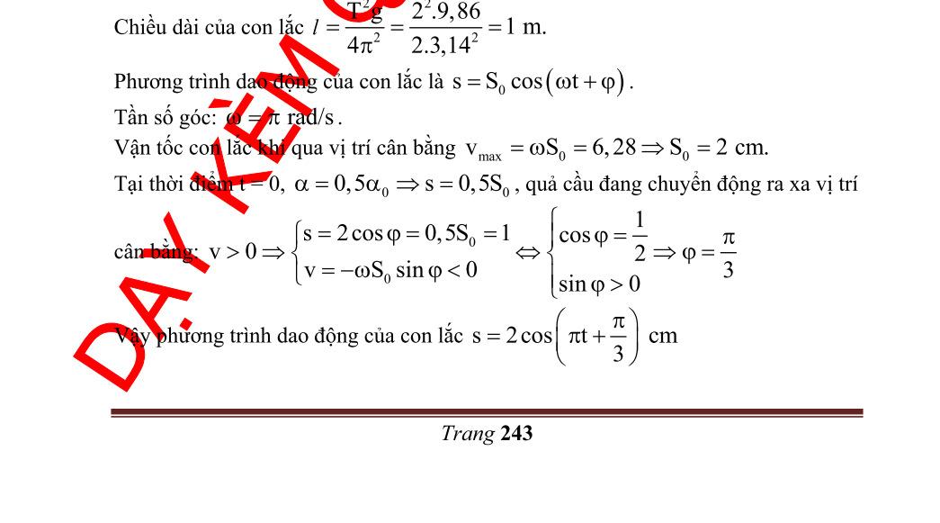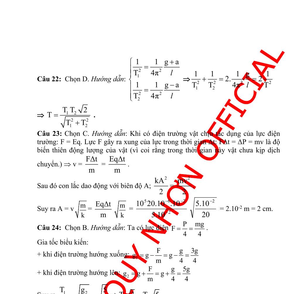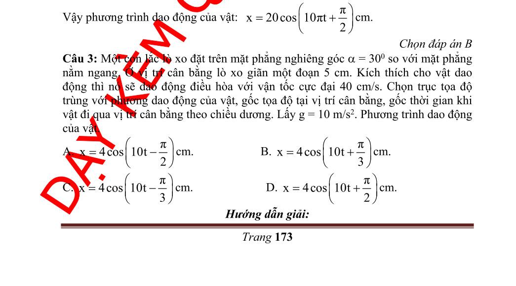 DẠYKÈMQUYNHƠN OFFICIAL Trang 16 x=5=20cos(10t+ ) cos(10t+ )=0,25=cos(±0,42).π 2 π 2 Vìv=–100sin(10t+ )<0nênta chọn (10t+ )=0,42 +2k π 2 π 2 Suyra t=–0,008+0,2k; với k Z. Nghiệm dương nhỏ nhất trong họ nghiệm này