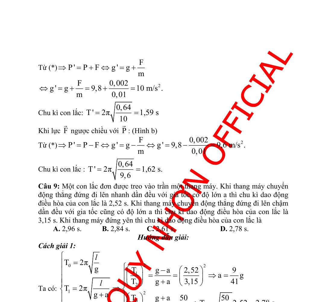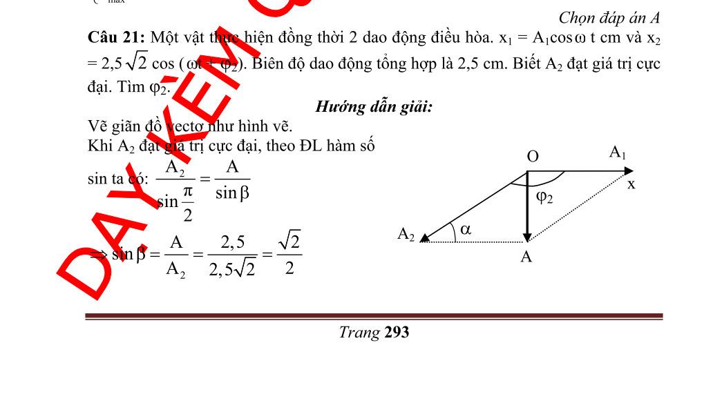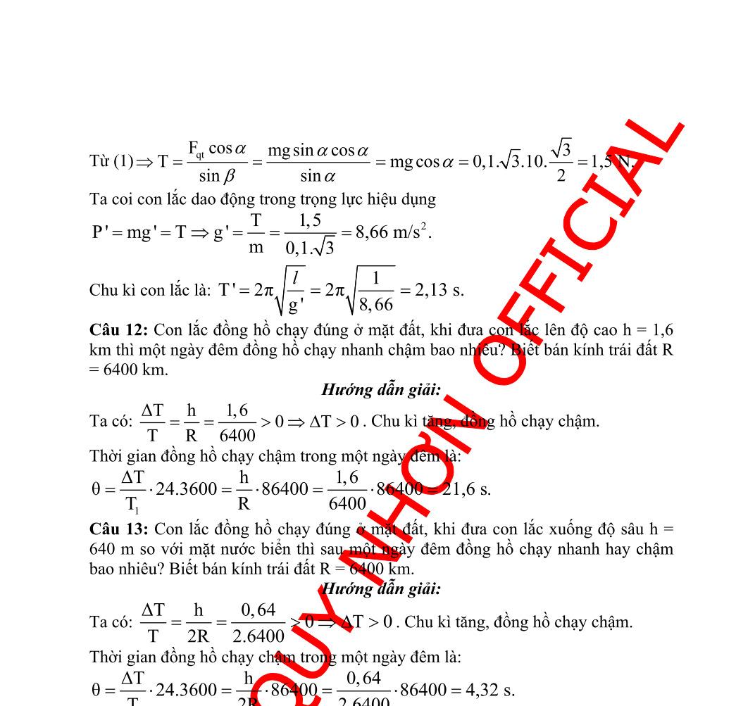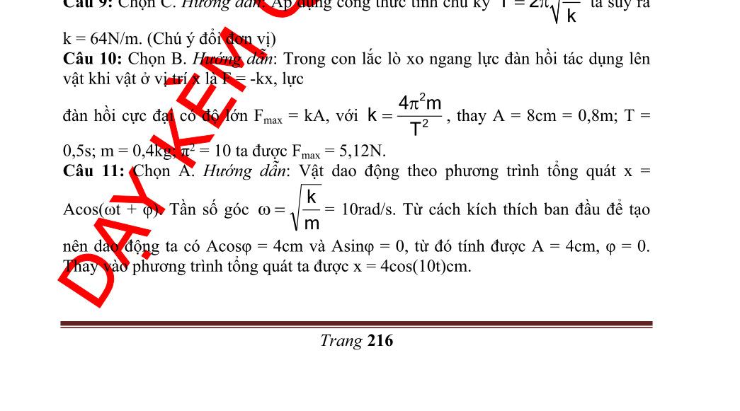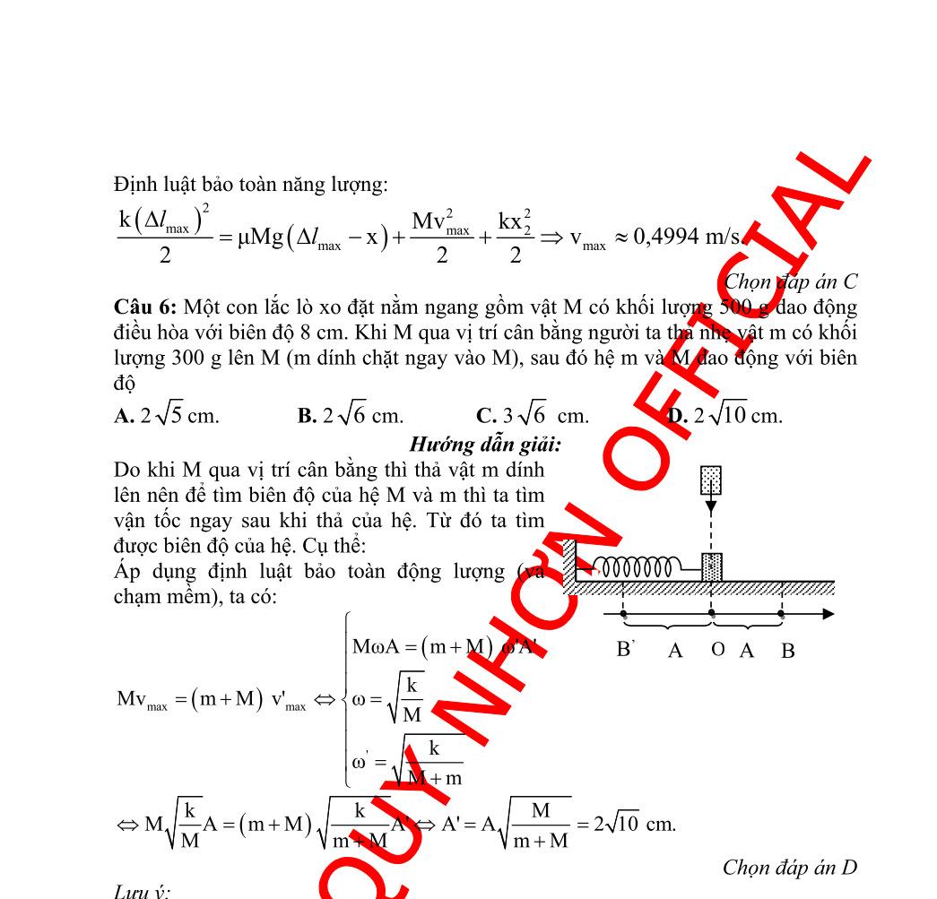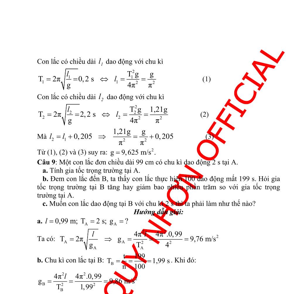 DẠYKÈMQUYNHƠN OFFICIAL Trang 16 x=5=20cos(10t+ ) cos(10t+ )=0,25=cos(±0,42).π 2 π 2 Vìv=–100sin(10t+ )<0nênta chọn (10t+ )=0,42 +2k π 2 π 2 Suyra t=–0,008+0,2k; với k Z. Nghiệm dương nhỏ nhất trong họ nghiệm này