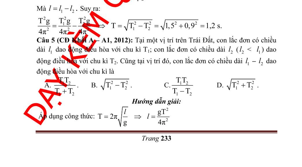DẠYKÈMQUYNHƠN OFFICIAL Trang 140 t2 =. 5π 651.T.Ts 2π1212 Vậy t=502T+ =s. 1 12 5021 512 6029 60 Câu