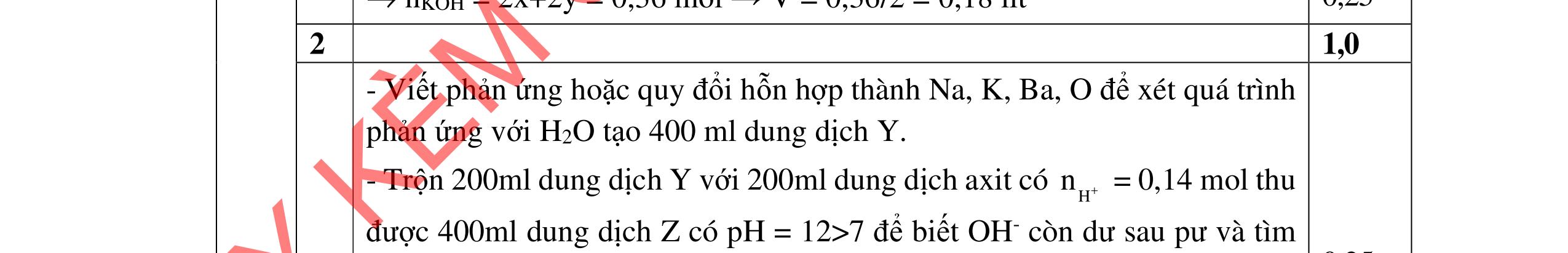Ba2+ + SO4 2- → BaSO4 0,25 Ba2+ + 2HSO4 + 2OH → BaSO4 + SO4 2 + 2H2O 0,25 1.2. 2,0 đ