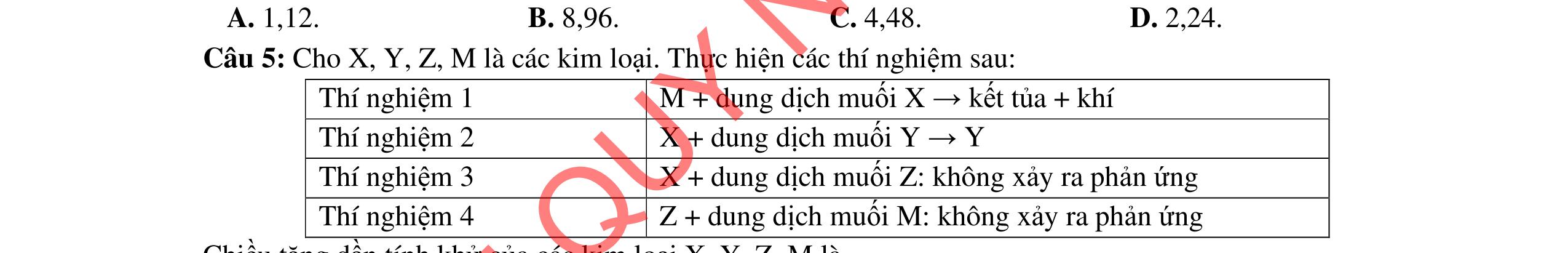 Cho NTK các nguyên tố: H= 1; He = 4; C = 12; N = 14; 0= 16; Na = 23; Mg = 24; Al = 27; S = 32; K = 39; Ca = 40; Fe = 56; Cu = 64; Zn = 65; Ag = 108