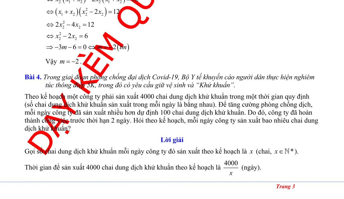 DẠYKÈMQUYNHƠNOFFICIAL .240242 x xx Vậy phương trìnhcó nghiệm .2x 2) 42120 xx Đặt 2(0)txt Khi đó phương trình trở thành: . 2120 tt Tacó: nên phương trìnhcó2 nghiệm phân biệt 2 2 (1)4(12)4970 1724() 1723() t tm t ktm Với tacó . 4t 2 2 4 2 x x x Vậy tập nghiệm của phương trìnhlà .{2;2}S b) Giải hệ phương trình 23 24 xy xy Tacó: 23235512 242482421 xyxy y yx xyxyxyxy