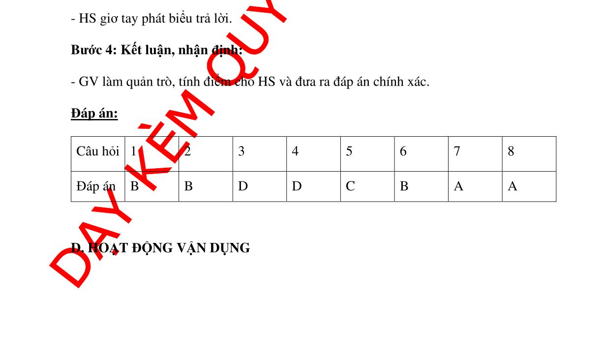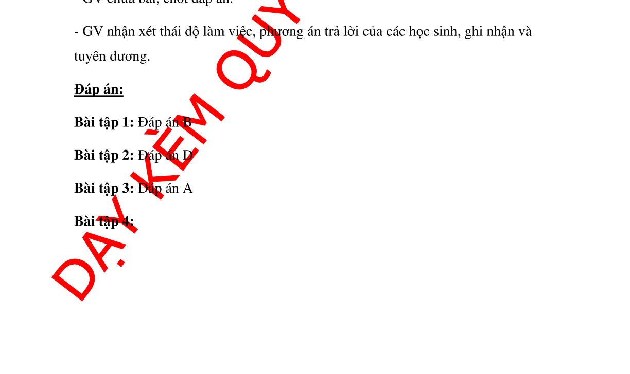 - GV nhận xét thái độ làm việc, phương án trả lời của các học sinh, ghi nhận và tuyên dương.