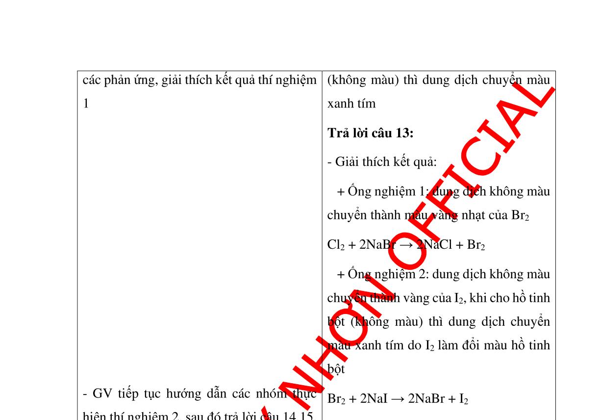 - Trả lời câu 8 sgk trang 38: Mỗi nhóm 1 cột, riêng nhóm VIIIB có 3 cột (cột 8, 9, 10).