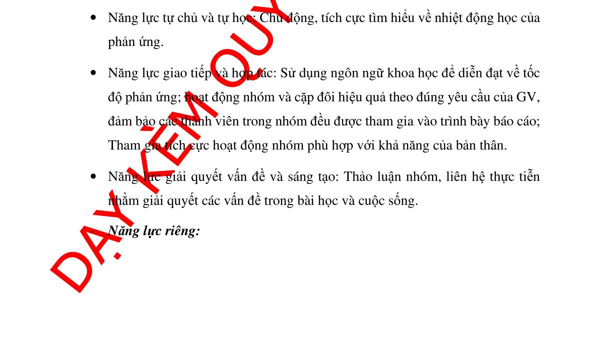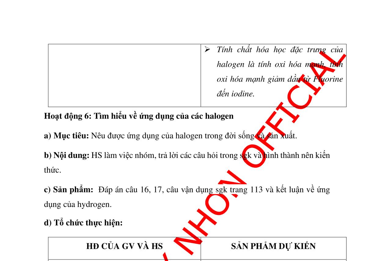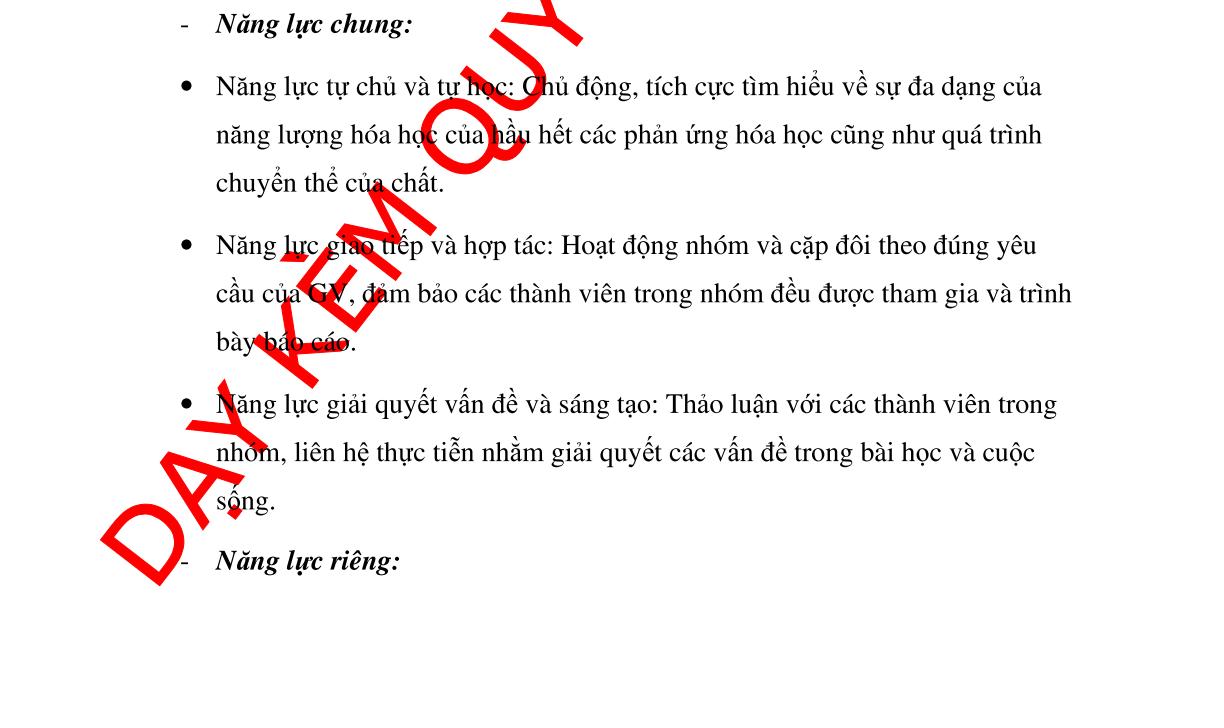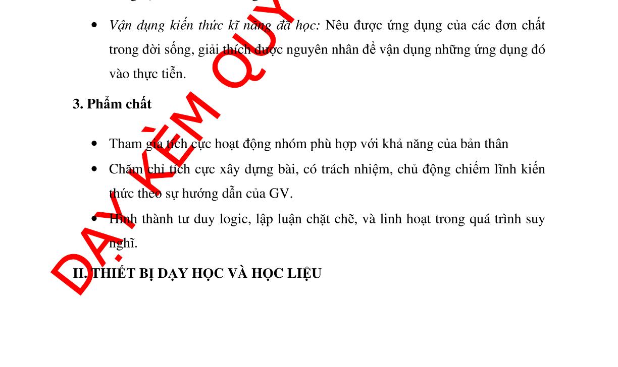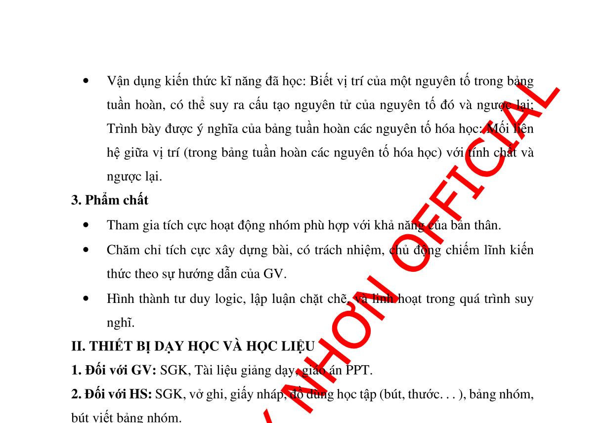 • Năng lực tự chủ và tự học: Chủ động, tích cực tìm hiểu về sự biến đổi tính chất của nguyên tố, đơn chất, hợp chất trong bảng tuần hoàn.