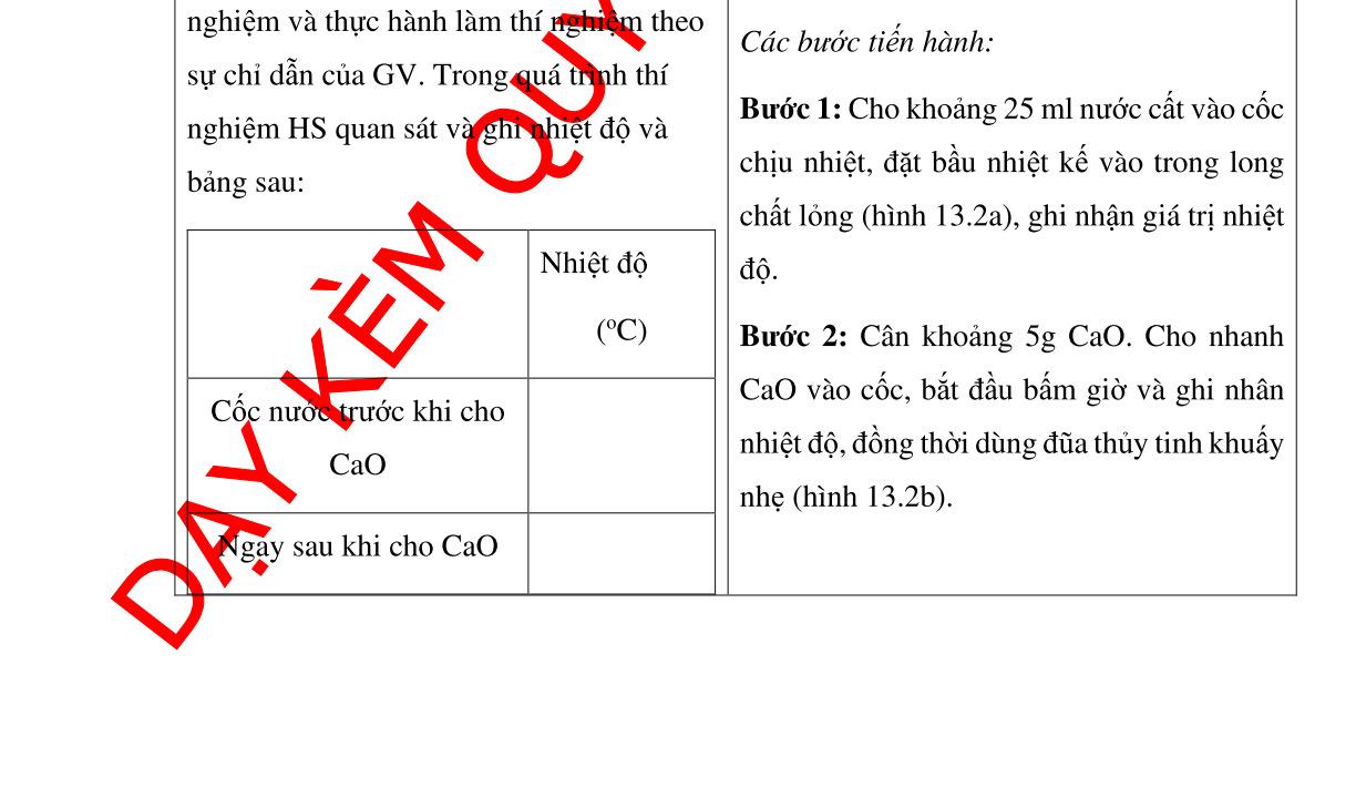 - Phương pháp học tập thông qua thực hành thí nghiệm: Thực hành thí nghiệm; Rèn luyện tư duy hoá học.