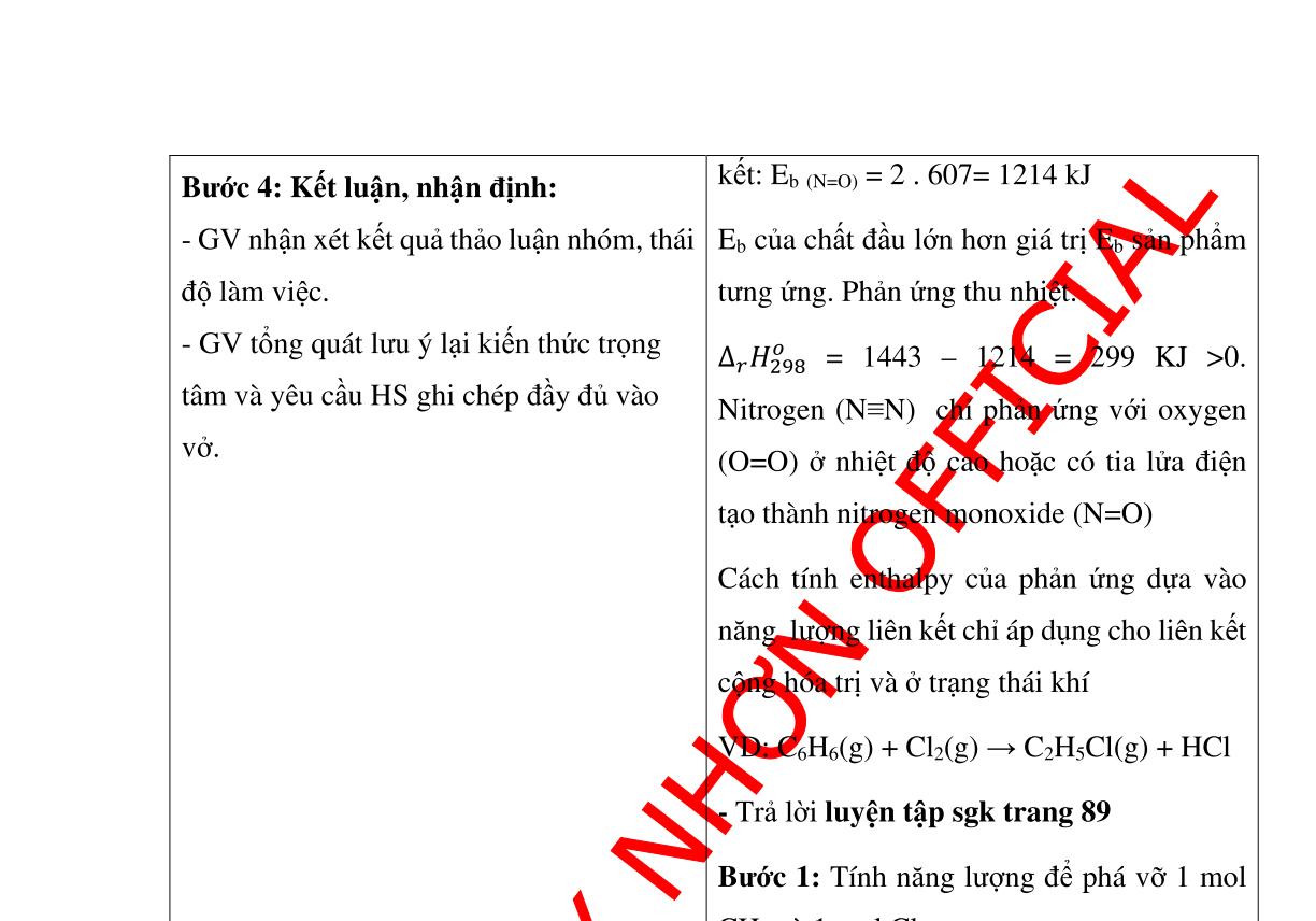 Do năng lượng phân lớp nd và (n+1)s chênh lệch nhau không nhiều, nên 1e ở phân lớp (n+1)s2 chuyển sang phân lớp nd4 hoặc nd9 để cho phân lớp nd đạt cấu hình bán bão hòa nd5, cấu hình bão hòa nd10 bền hơn. Bước 4: Kết luận, nhận định. - GV nhận xét thái độ làm việc, phương án trả lời của các học sinh, ghi nhận và tuyên dương.