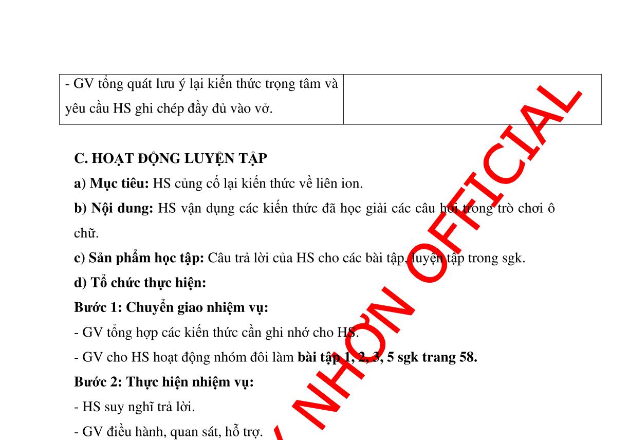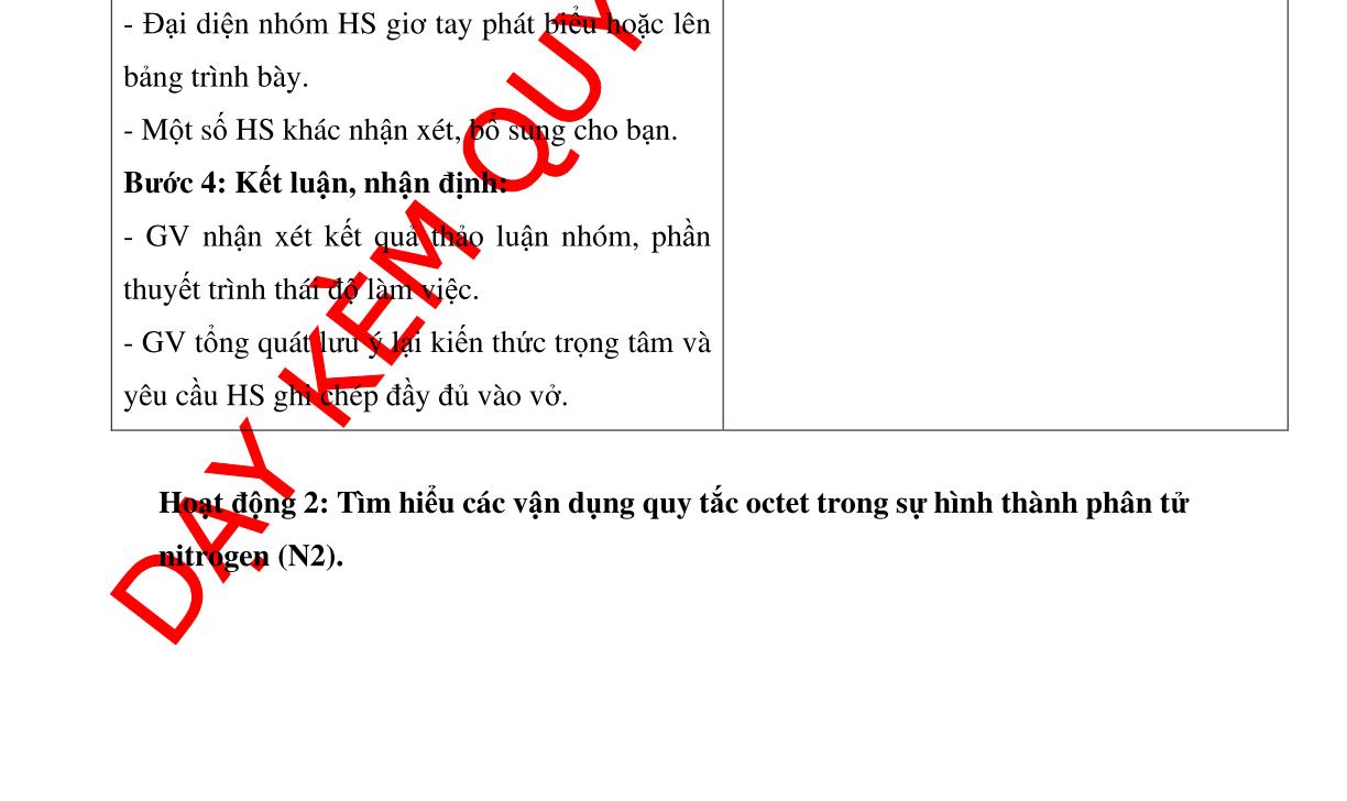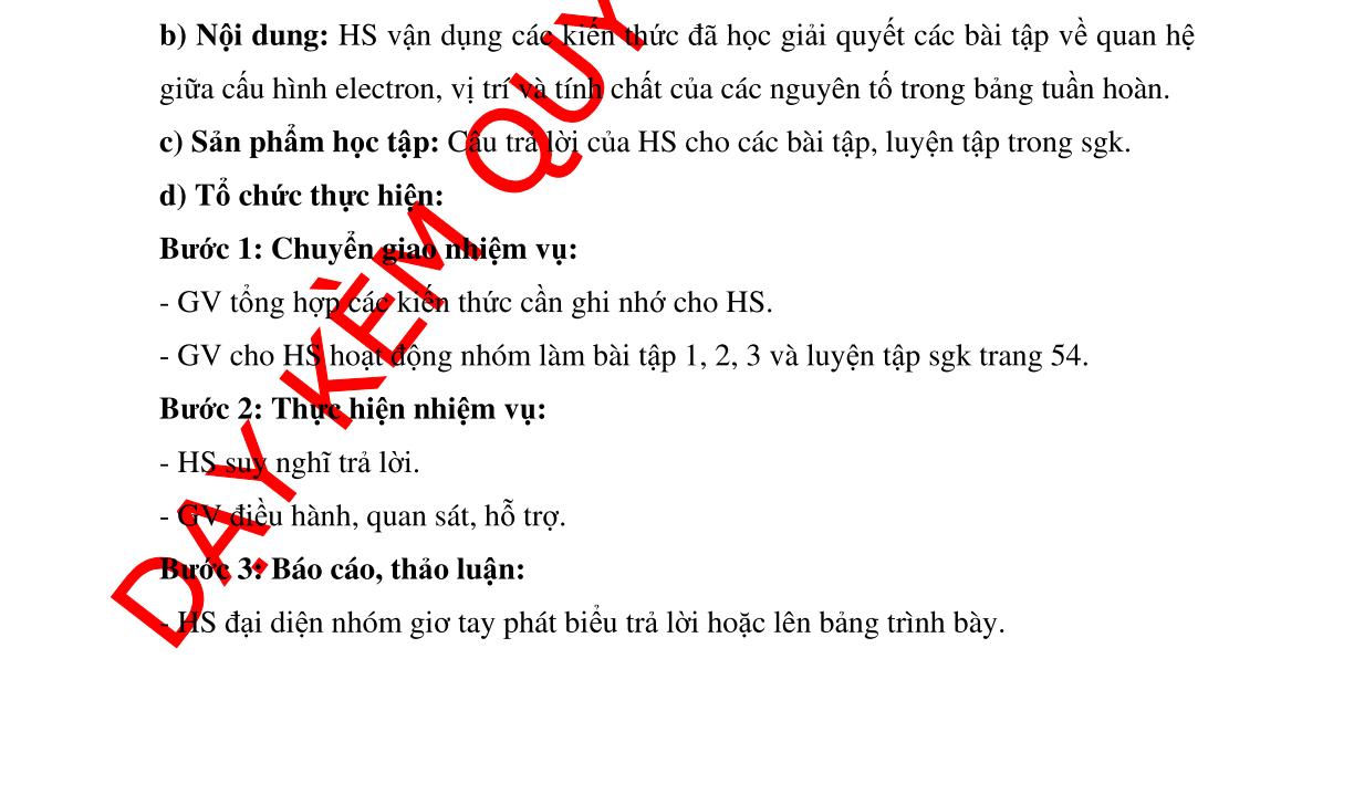 nh được nhóm dựa vào số electron hóa trị. b) Nội dung: HS quan sát hình ảnh kết hợp đọc sgk, thảo luận nhóm, trả lời câu hỏi và hình thành kiến thức. c) Sản phẩm: khái niệm electron hóa trị, nhóm; đặc điểm của nhóm; khái niệm electron hóa trị, đáp án câu 7, 8 sgk trang 38. d) Tổ chức thực hiện: