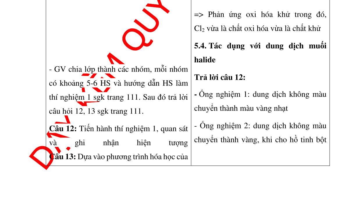 - GV chia lớp thành 4 – 5 nhóm, đọc thông tin phương pháp nghiên cứu hóa học và ví dụ trong SGK, trả lời câu hỏi 8, 9 sgk trang 10 và câu hỏi luyện tập sgk trang 11.