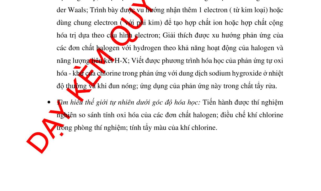 • Năng lực nhận thức hóa học: Nêu được khái niệm bán kính nguyên tử, độ âm điện, tính kim loại, tính phi kim, tính acid / base của các oxide và hydroxide qua các phương trình hóa học của các phản ứng xảy ra.