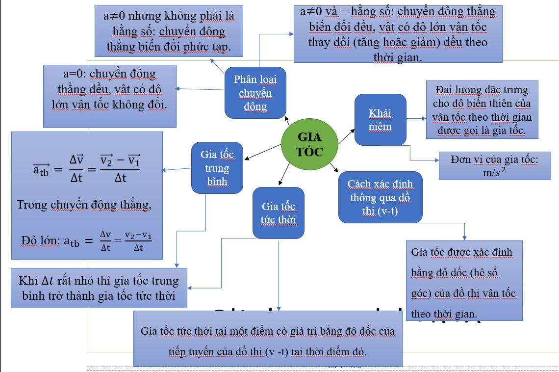 n động thẳng biến đổi đều. a. Mục tiêu: HS rút ra được các công thức của chuyển động thẳng biến đổi đều. b. Nội dung: GV hướng dẫn HS bằng các kĩ thuật khăn trải bàn và vẽ sơ đồ tư duy về mối liên hệ giữa các đại lượng trong chuyển động thẳng biến đổi đều.