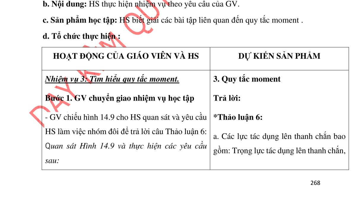d. Tổ chức thực hiện: Bước 1. GV chuyển giao nhiệm vụ học tập