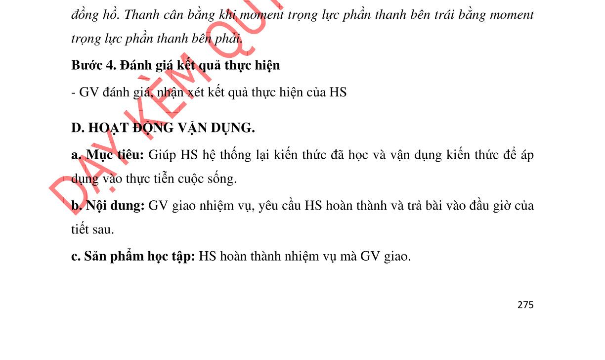 D. HOẠT ĐỘNG VẬN DỤNG a. Mục tiêu: giúp HS vận dụng kiến thức đã học để áp dụng vào thực tiễn cuộc sống.