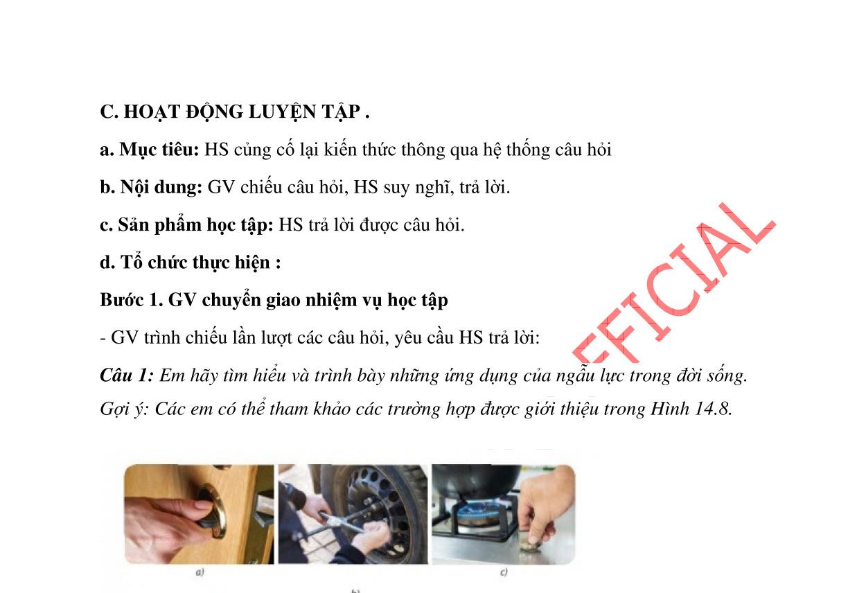 Bước 2. HS thực hiện nhiệm vụ học tập - HS thực hiện theo yêu cầu của GV.