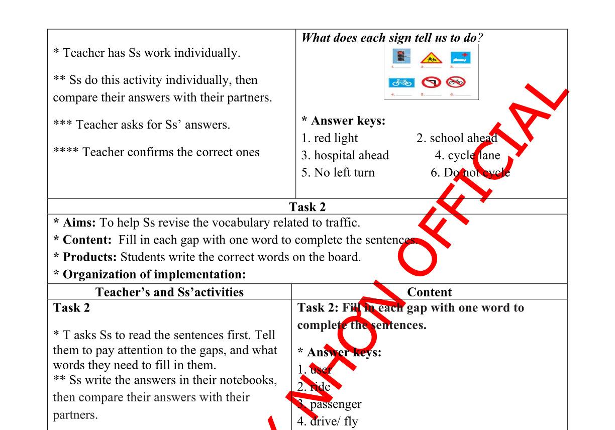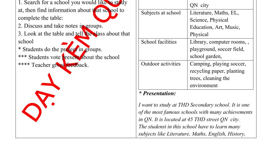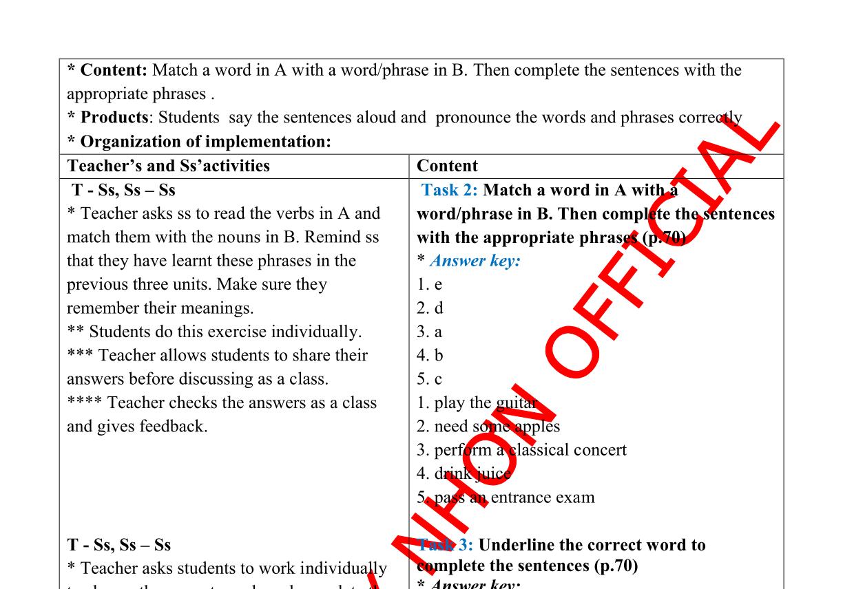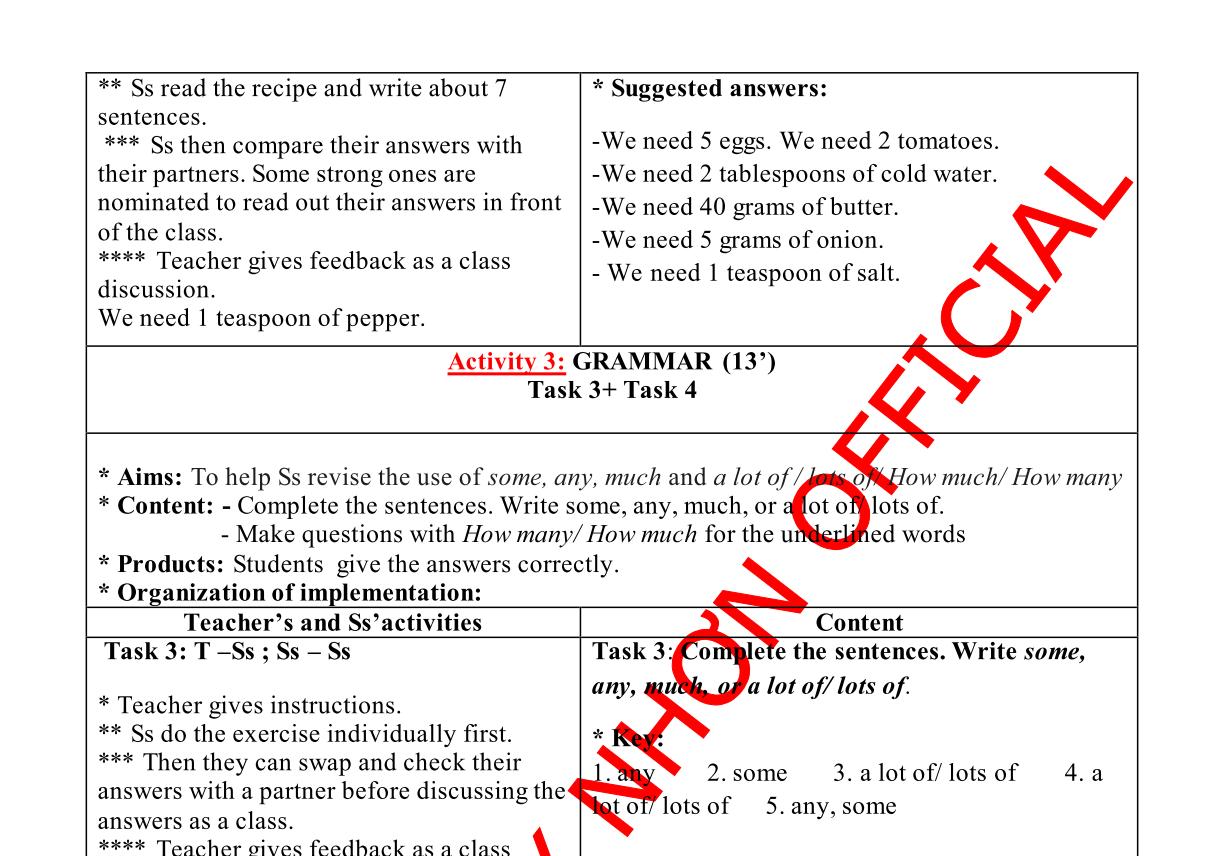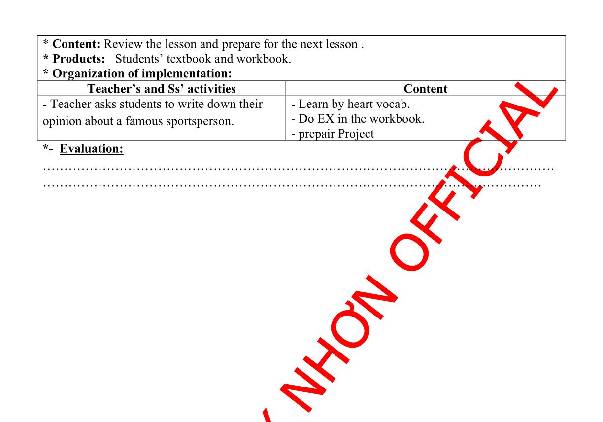 After the lesson, students will review the main contents of the lessons which are learned in the 6th form: The simple present tense, the present continuous tense, near future, present perfect, conditional sentences, modal verb wh-questions,…