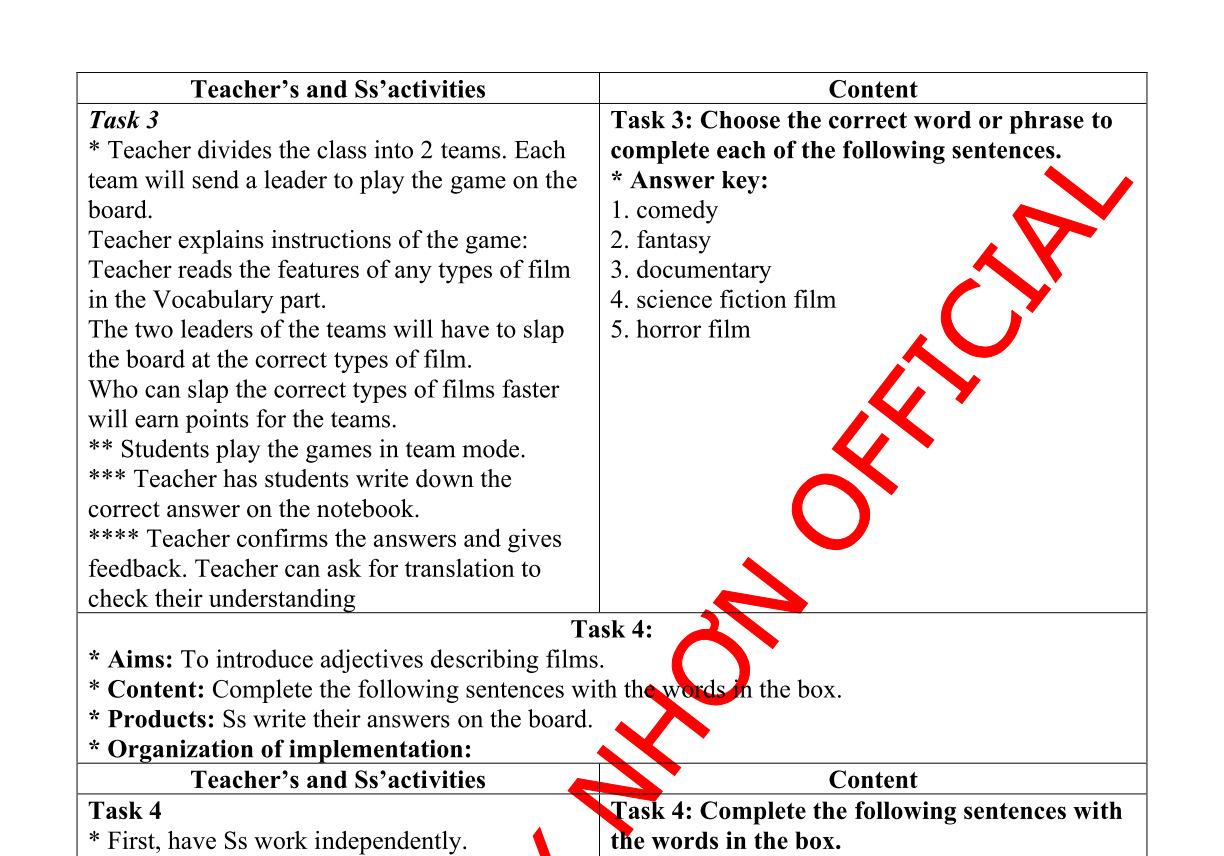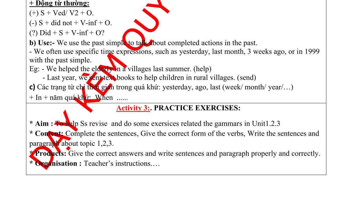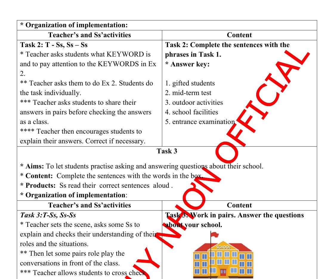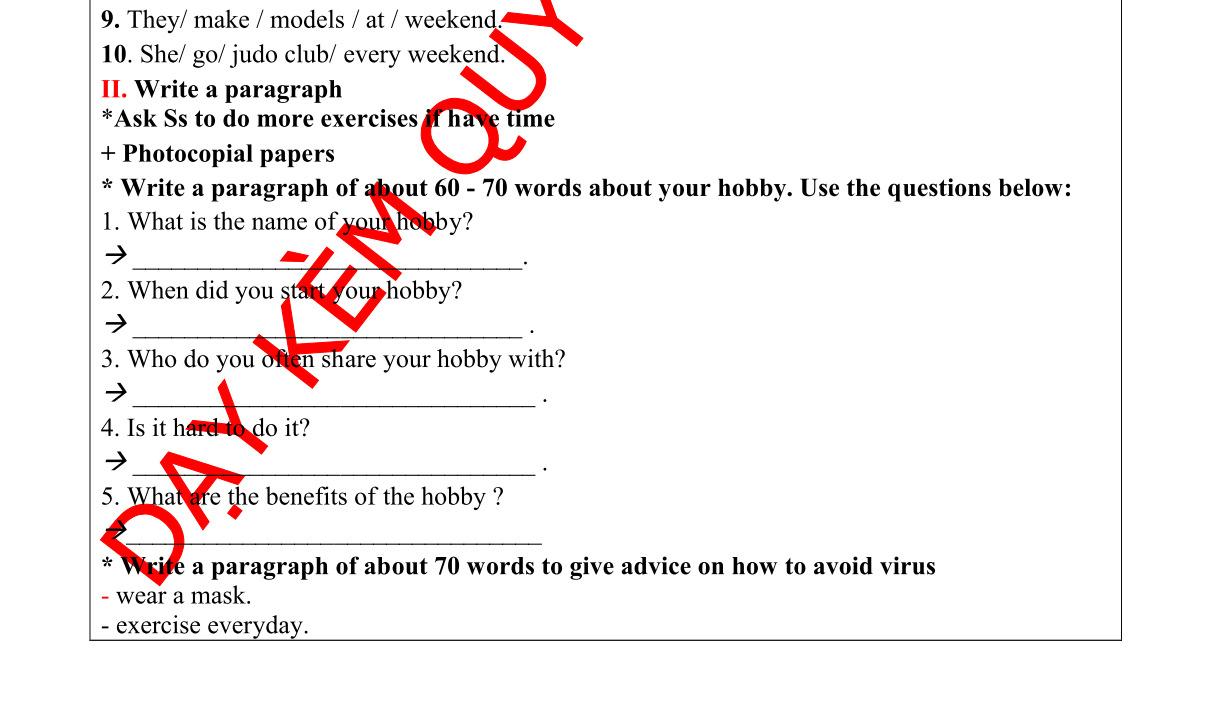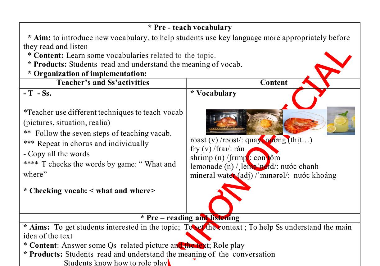 After the lesson, students will review the main contents of the lessons which are learned in the 6th form: The simple present tense, the present continuous tense, near future, present perfect, conditional sentences, modal verb wh-questions,…