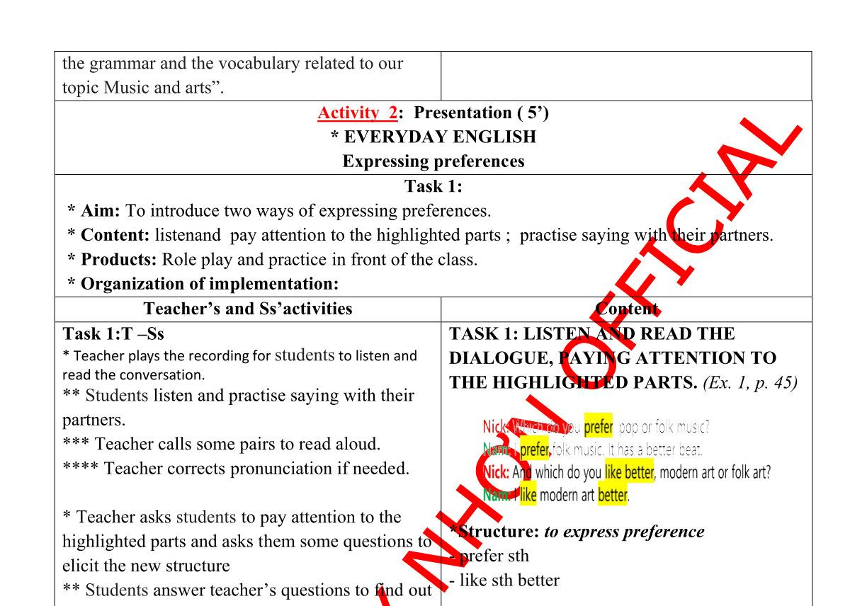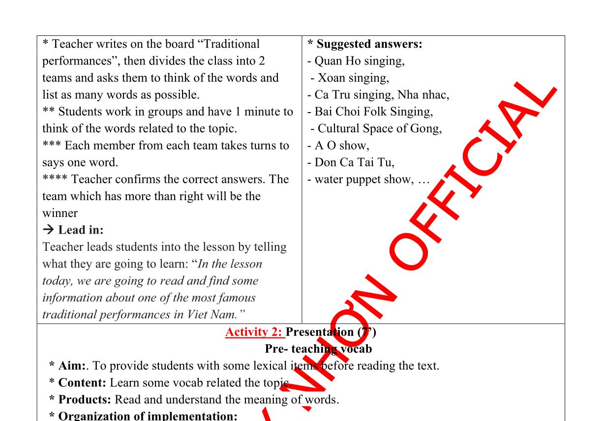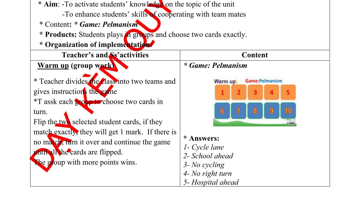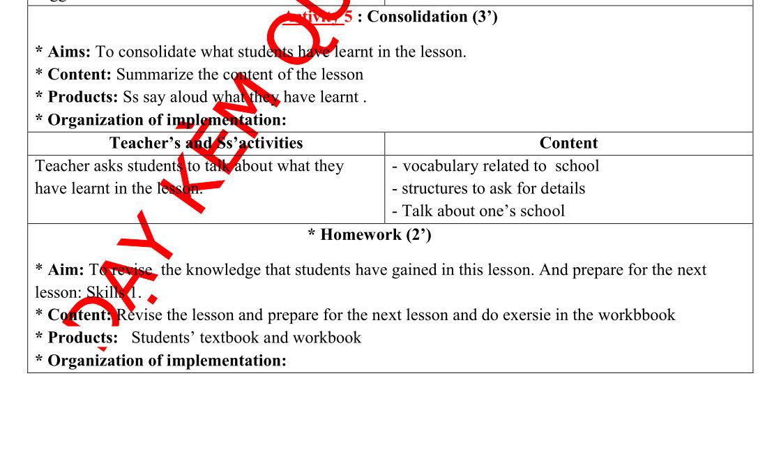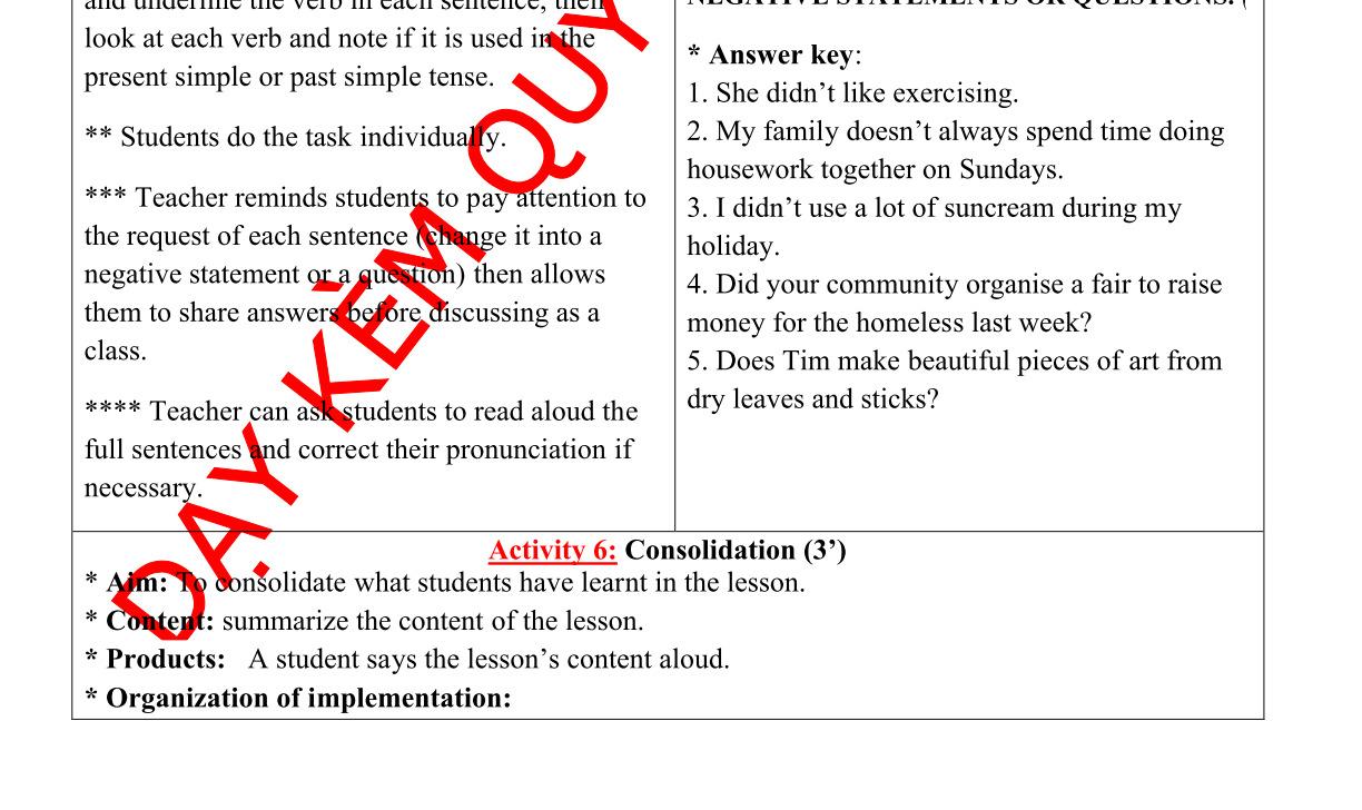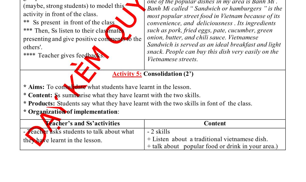 After the lesson, students will review the main contents of the lessons which are learned in the 6th form: The simple present tense, the present continuous tense, near future, present perfect, conditional sentences, modal verb wh-questions,…