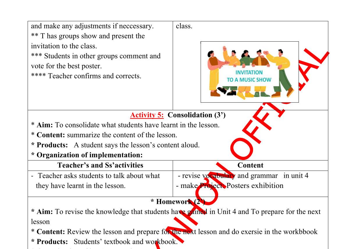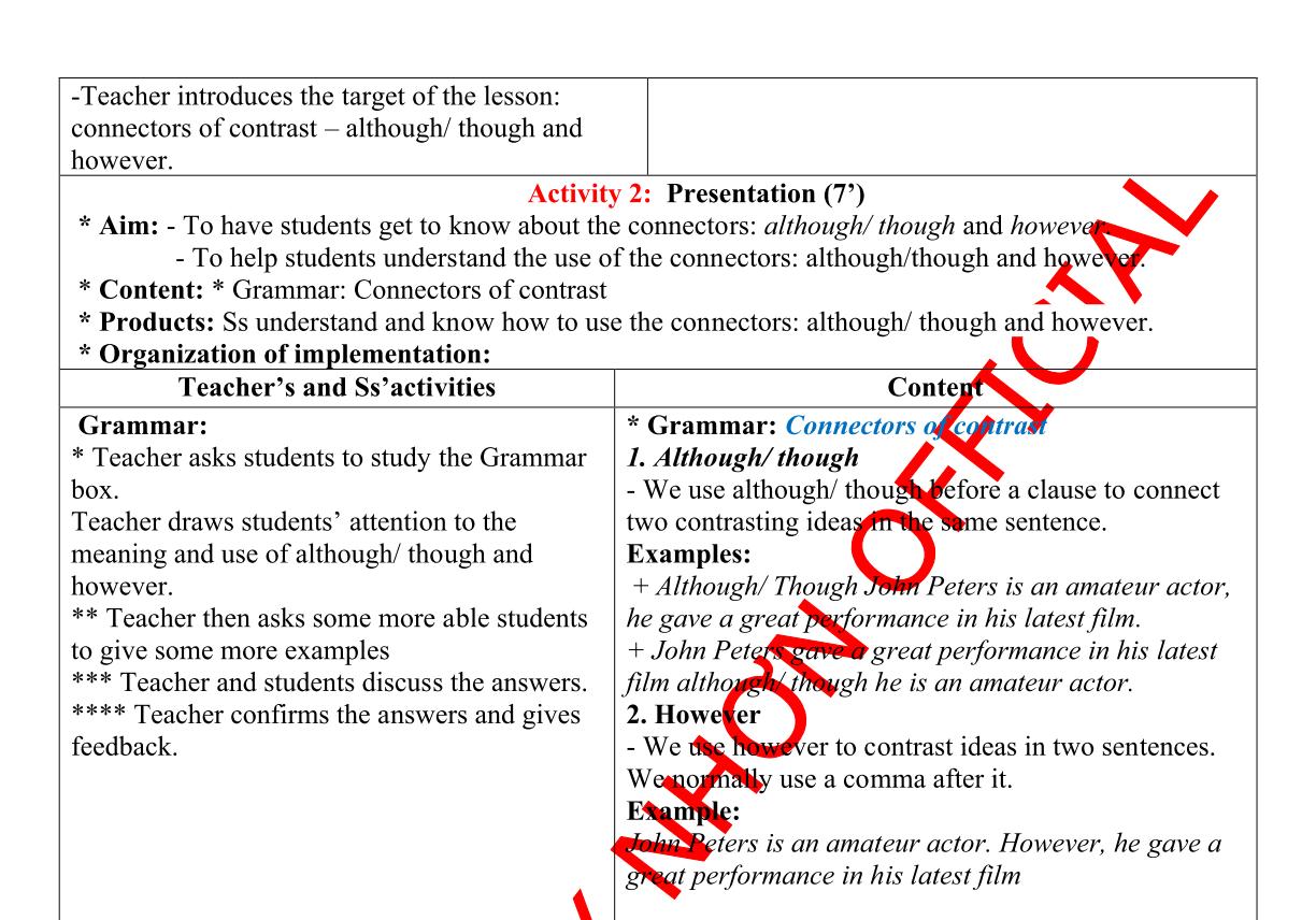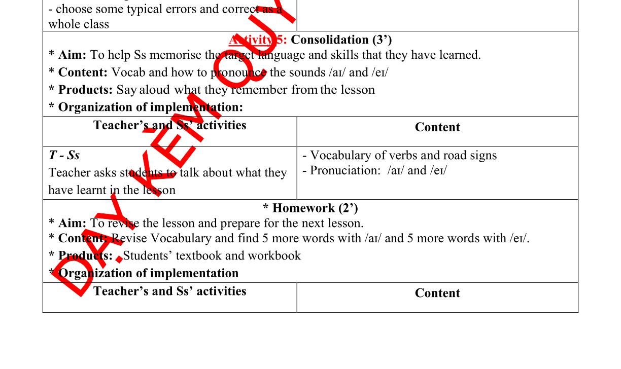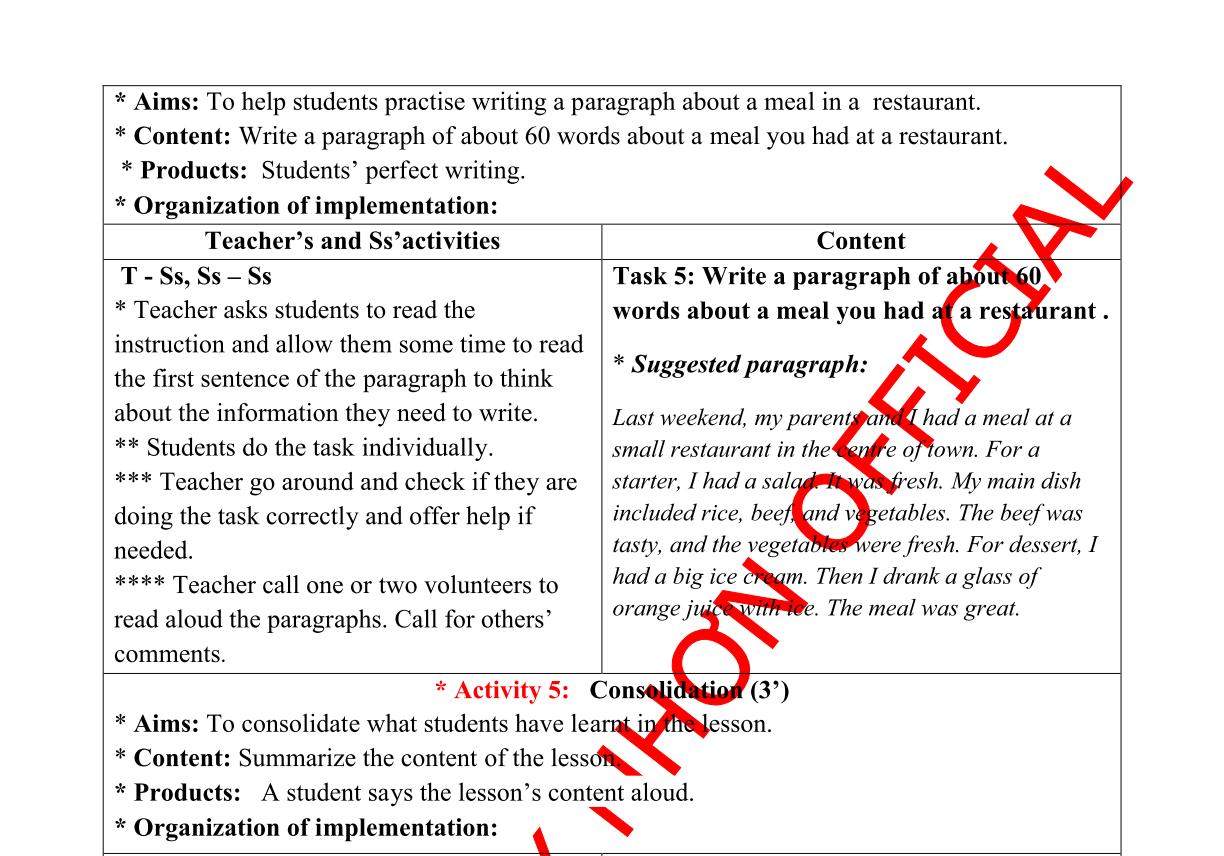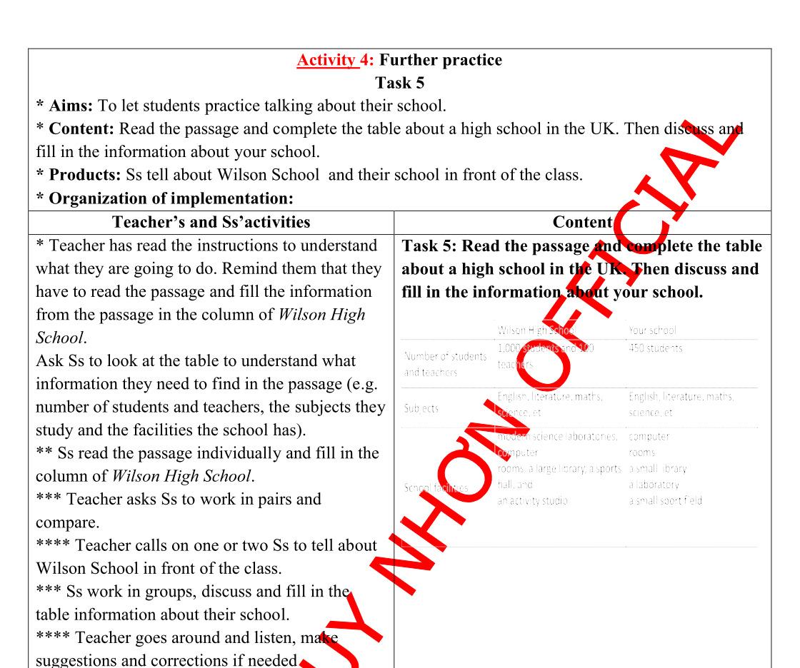 After the lesson, students will review the main contents of the lessons which are learned in the 6th form: The simple present tense, the present continuous tense, near future, present perfect, conditional sentences, modal verb wh-questions,…