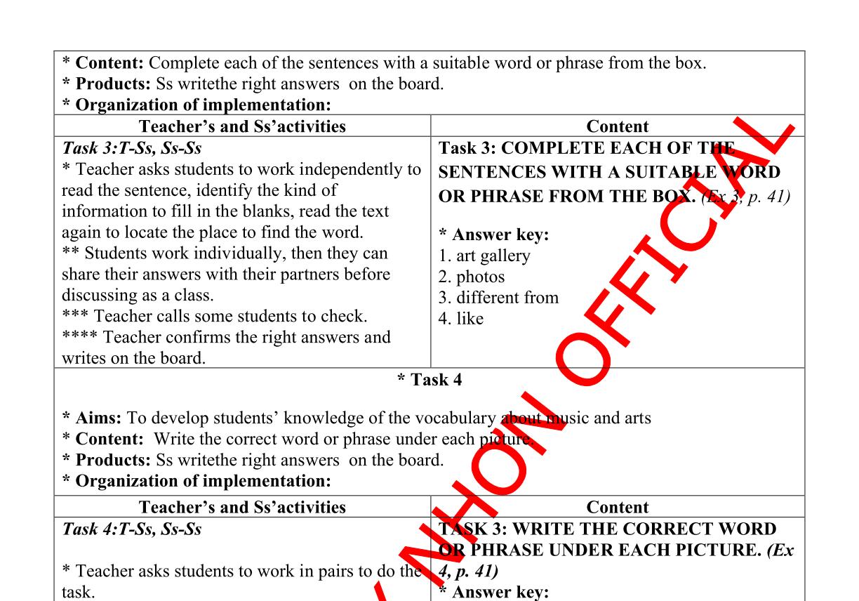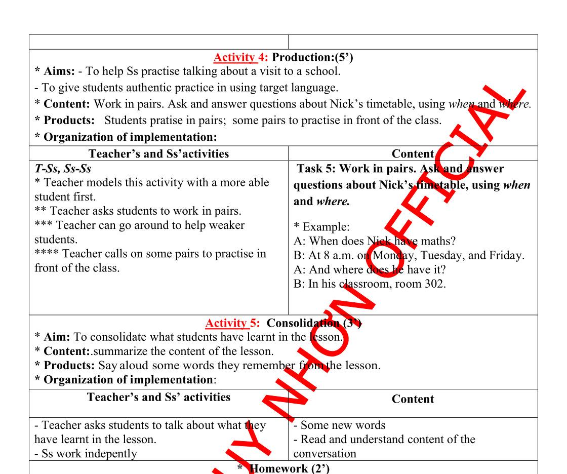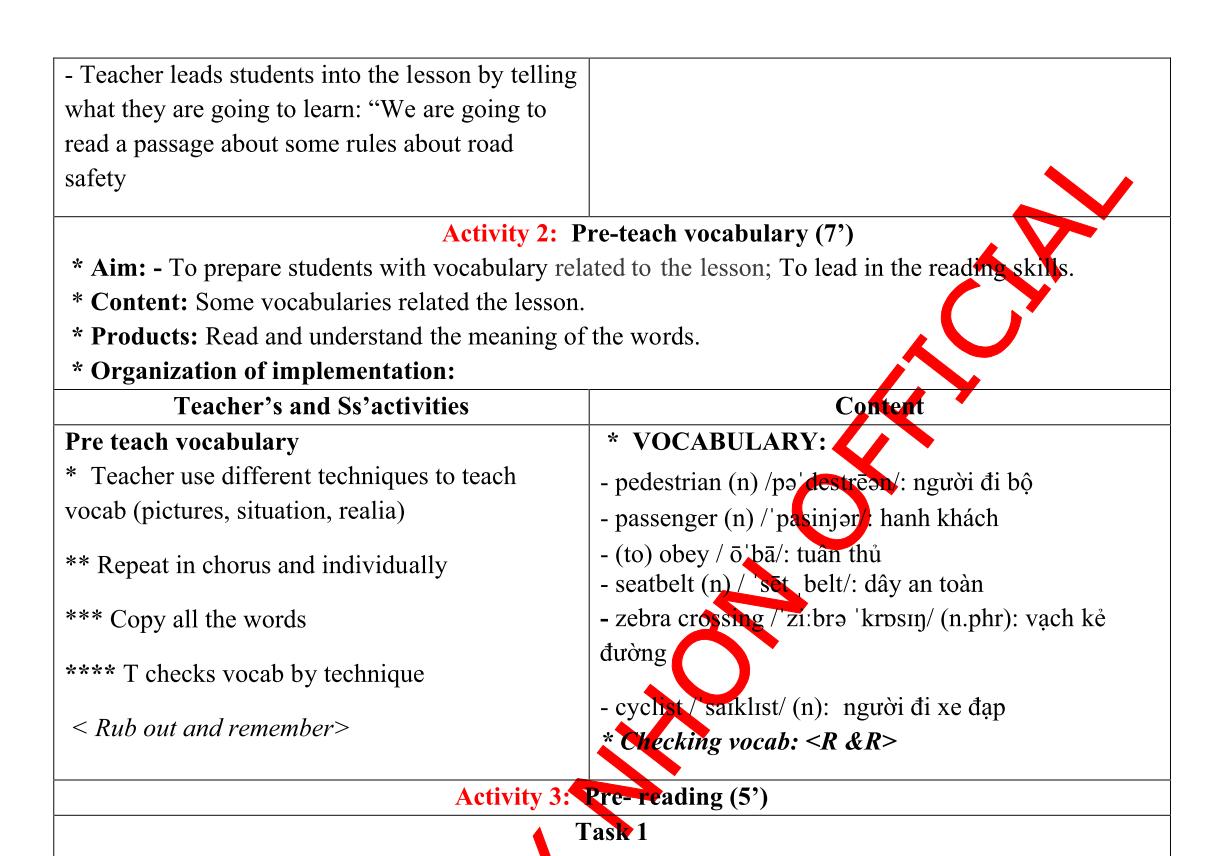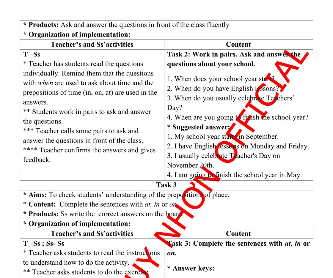 *Vocabulary: Use lexical items related to text book, and the way to learn English in class; at home... some classroom languages.