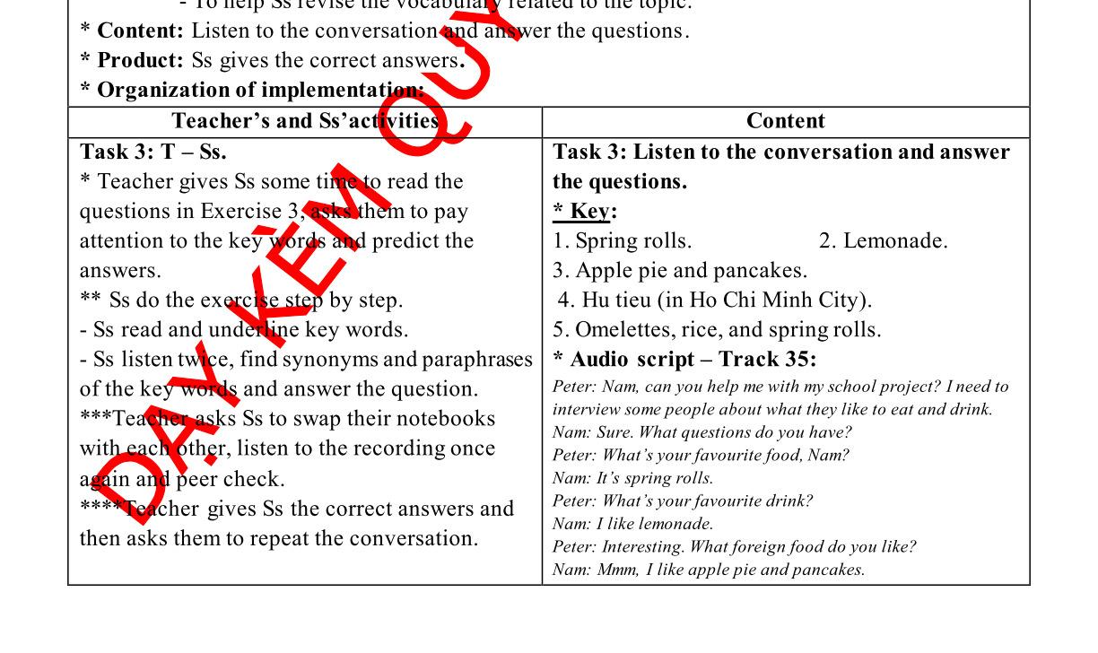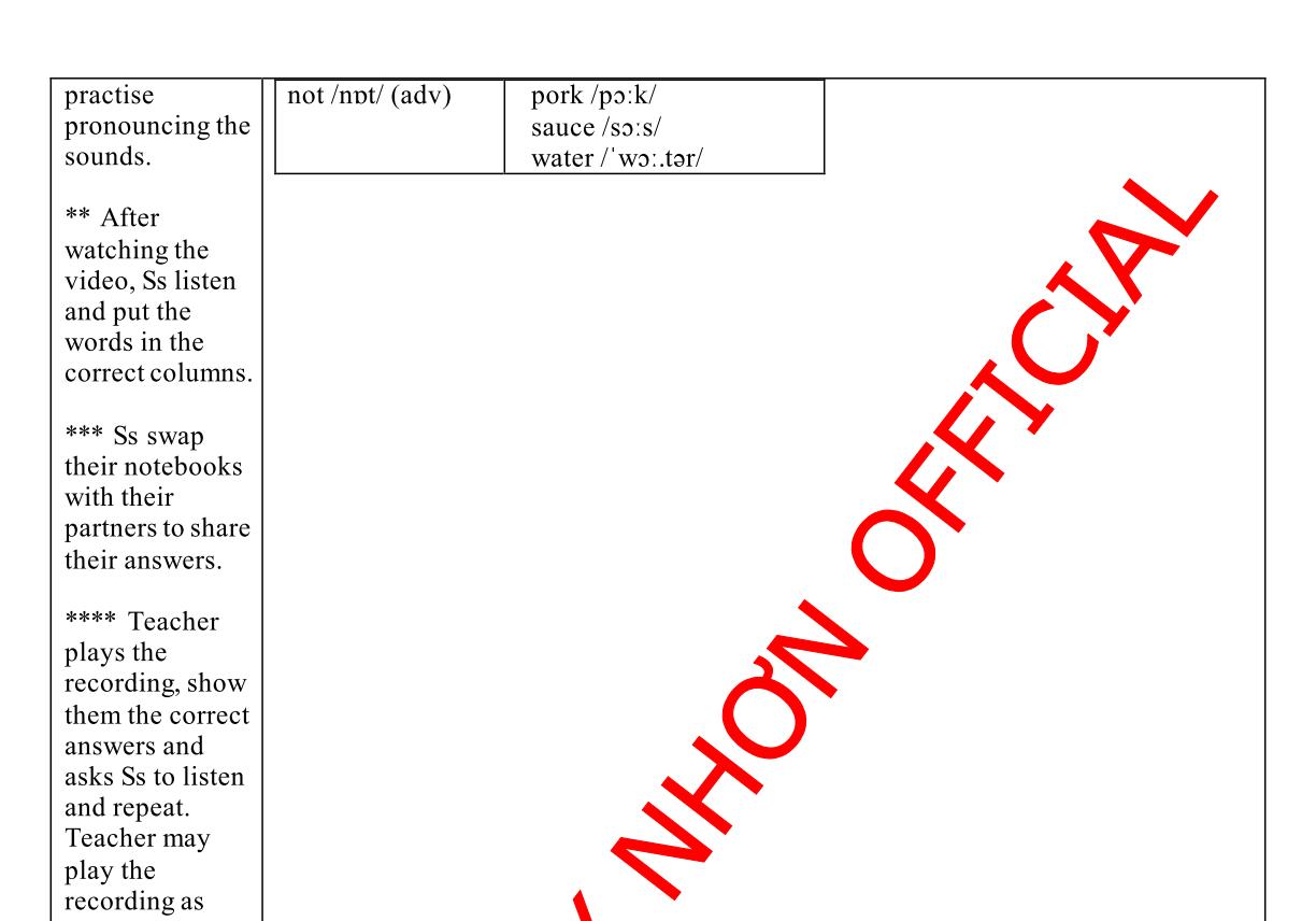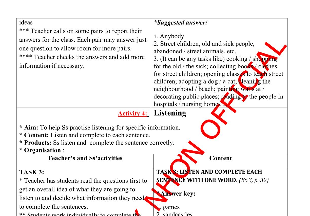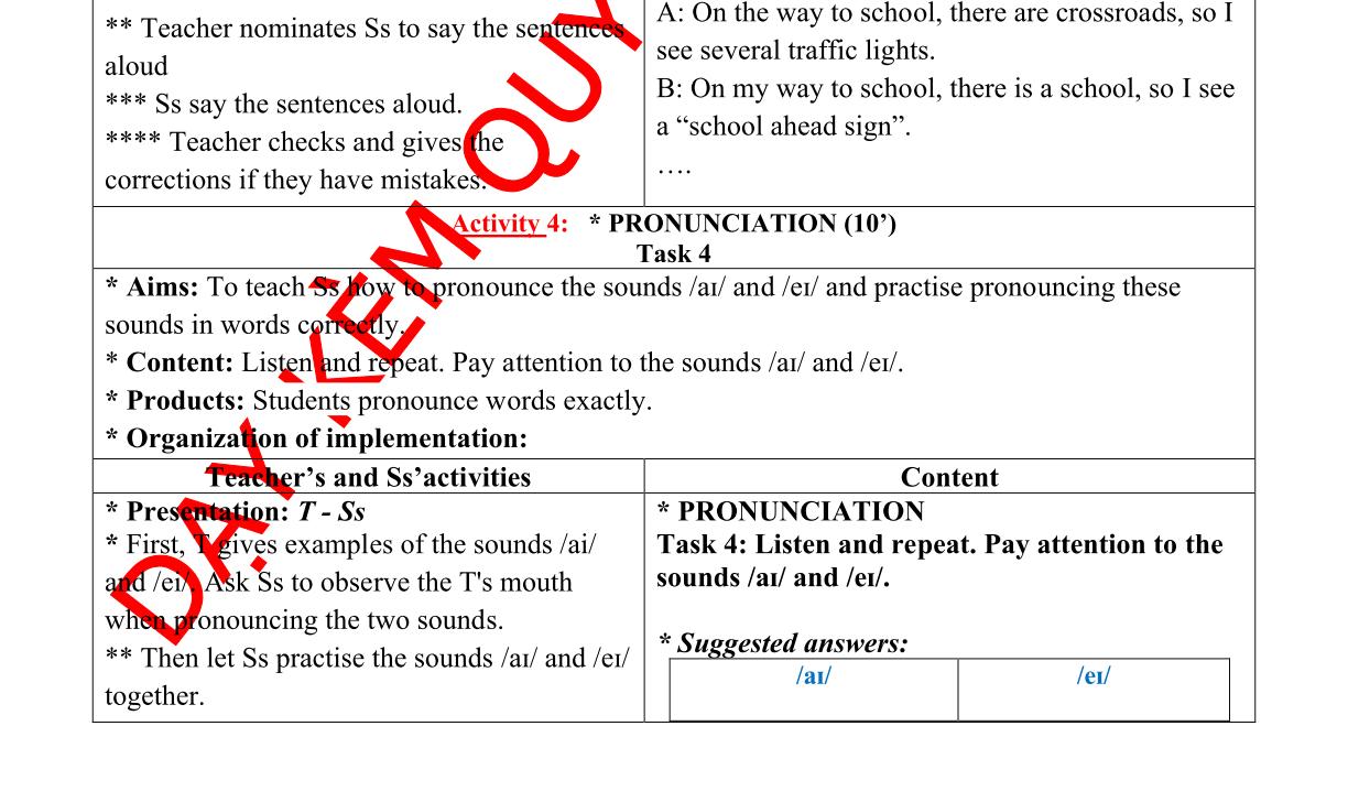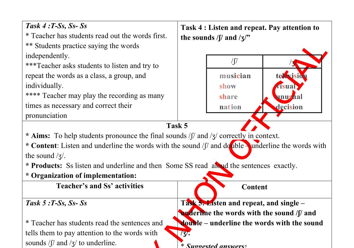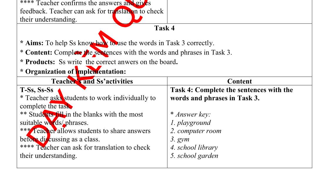 **** Teacher confirms the answers and corrects students’ pronunciation if necessary.