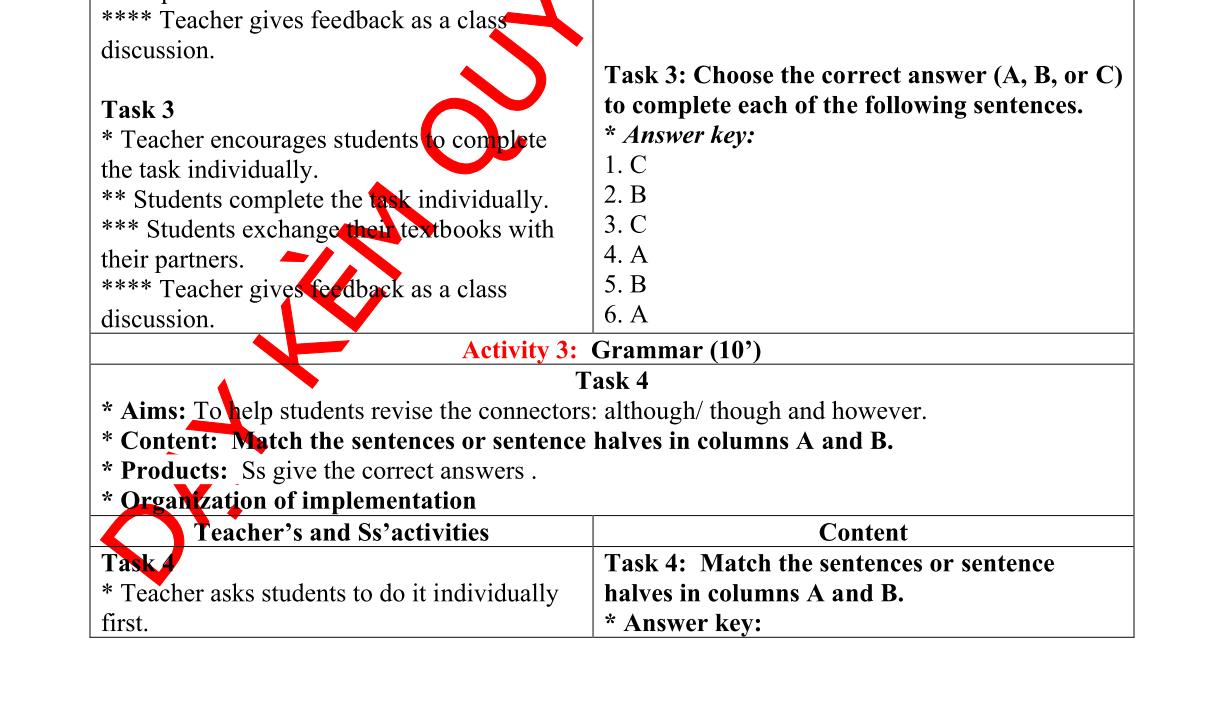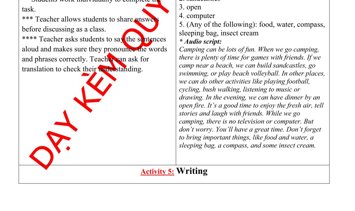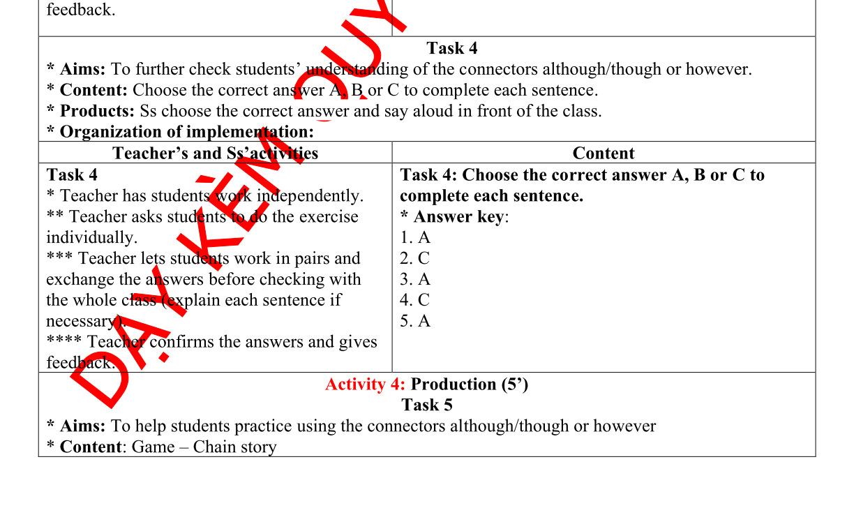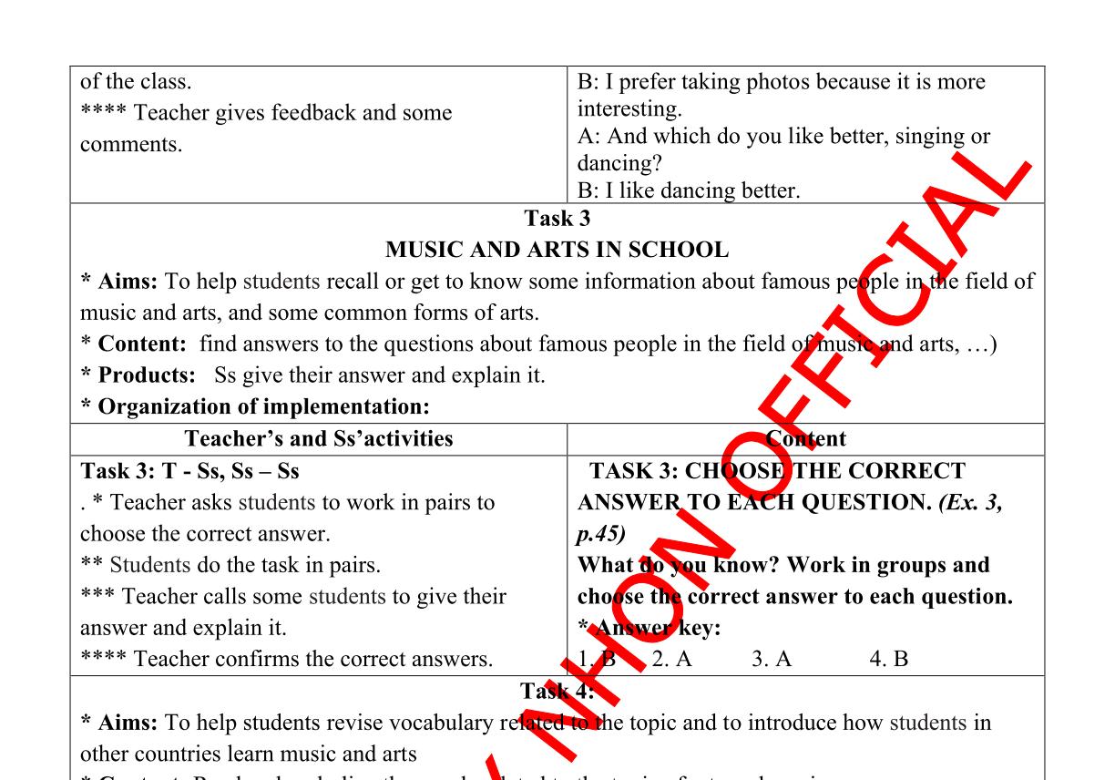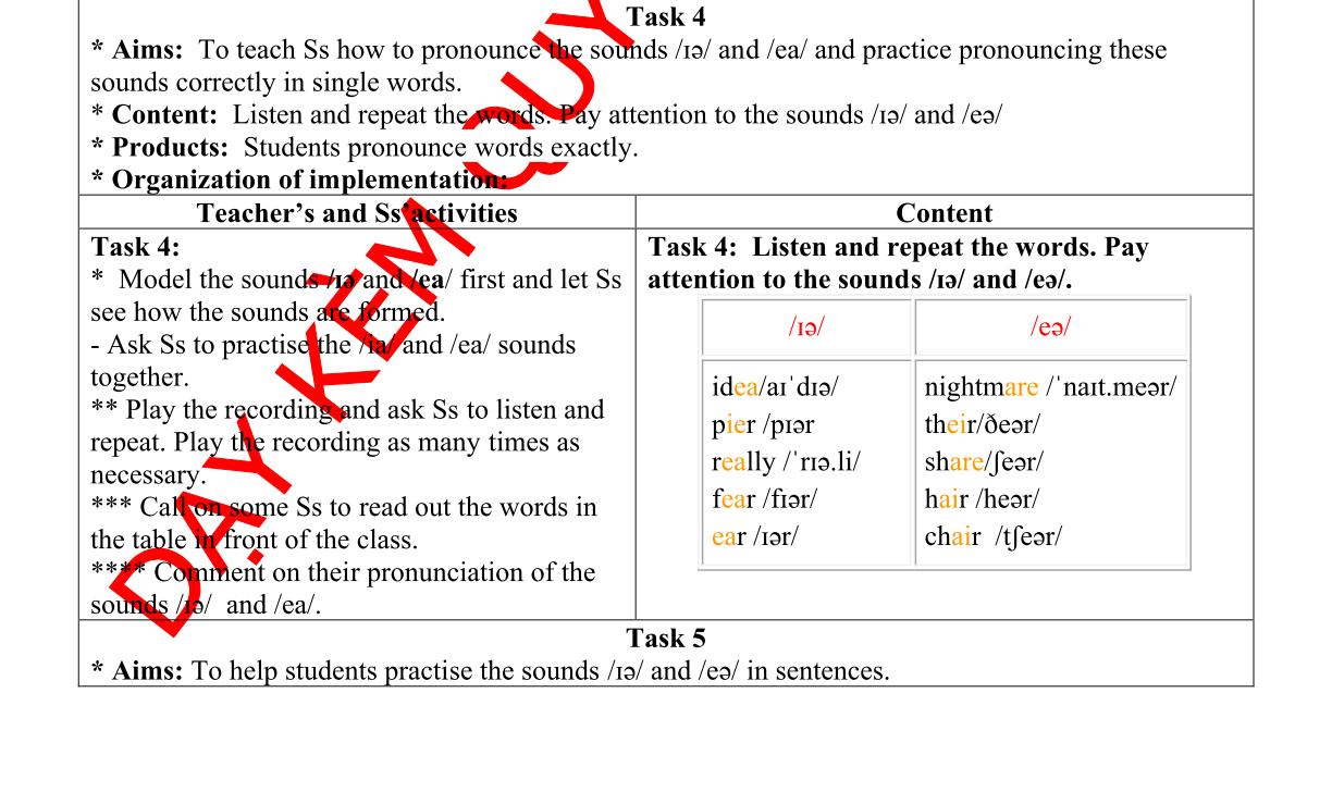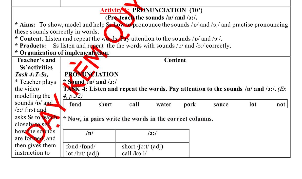 **** Teacher confirms the answers and corrects students’ pronunciation if necessary.