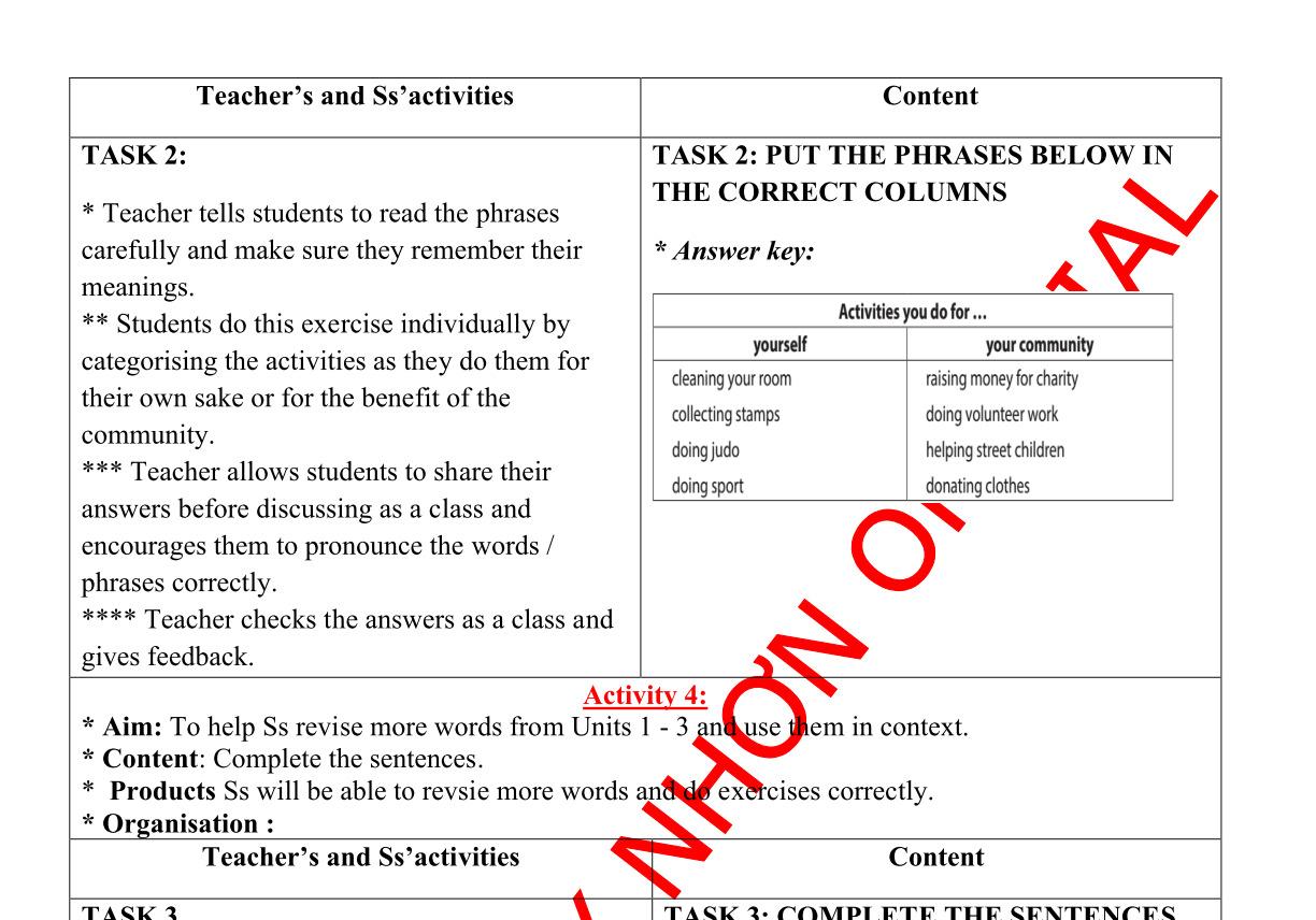 Week : UNIT 3: COMMUNITY SERVICE Period : Lesson 7: Looking back and project I. OBJECTIVES: