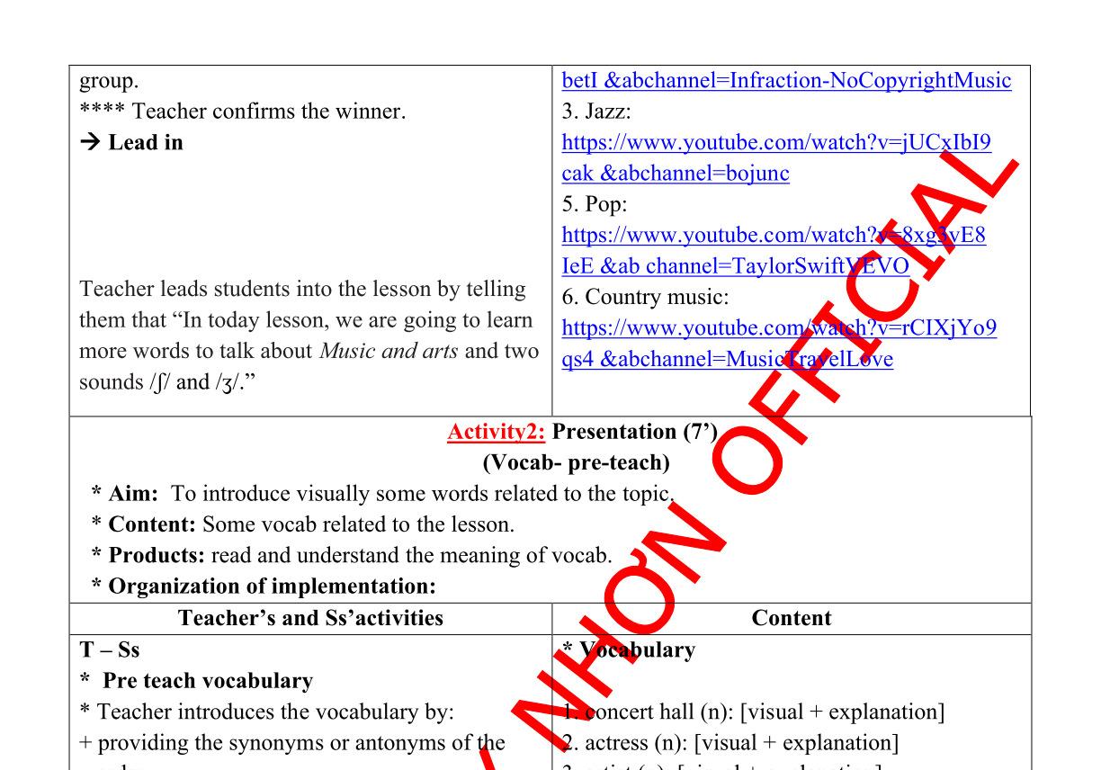 * Vocab: -Use the vocabulary to talk about Music and arts