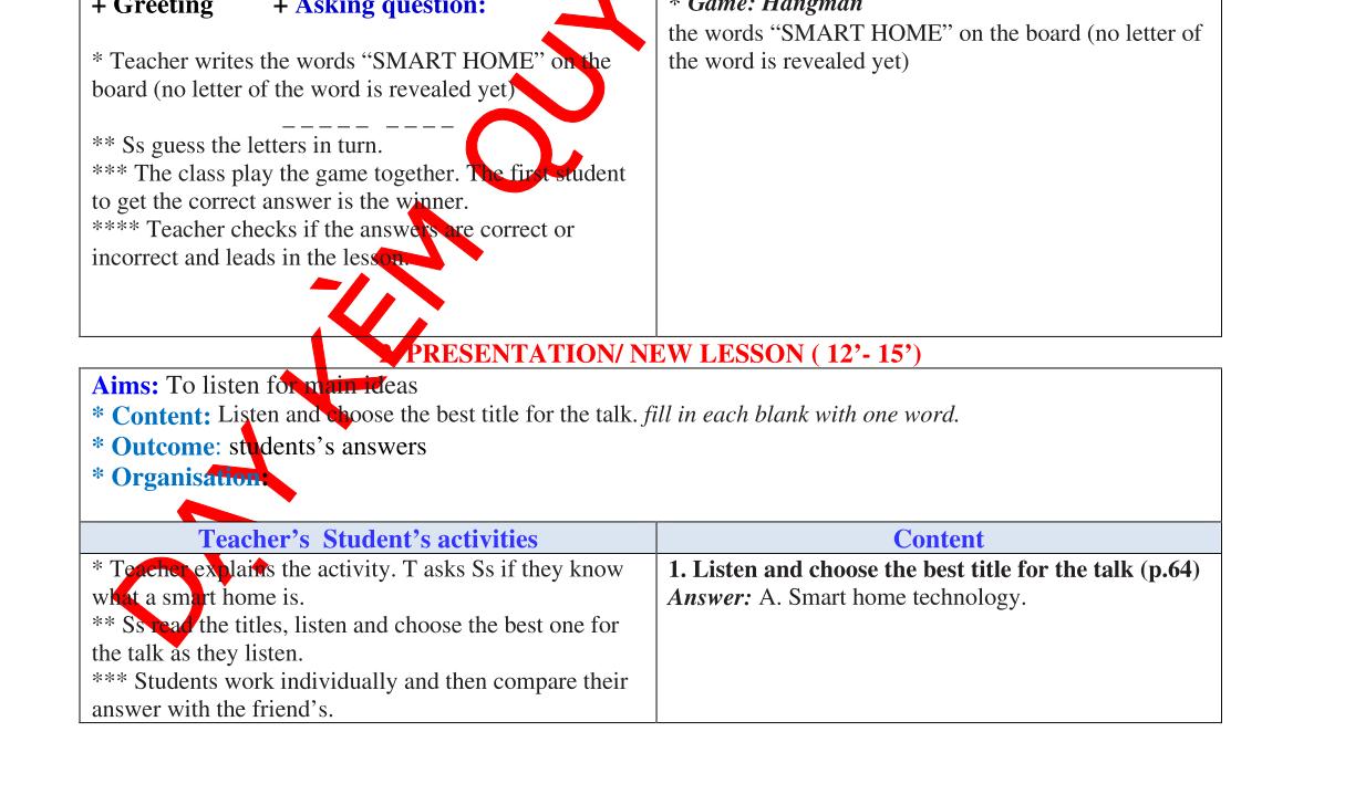 - Write the unit title on the board and ask Ss guest what they are going to learn this unit …