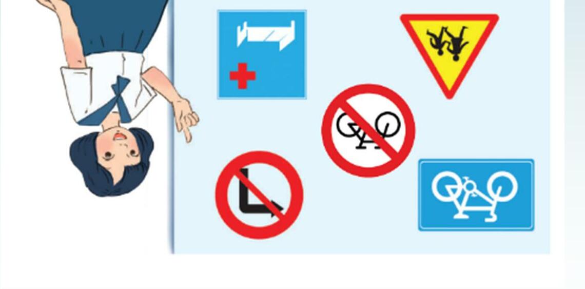 Label each sign. Work in pairs. What does each sign tell us to do?